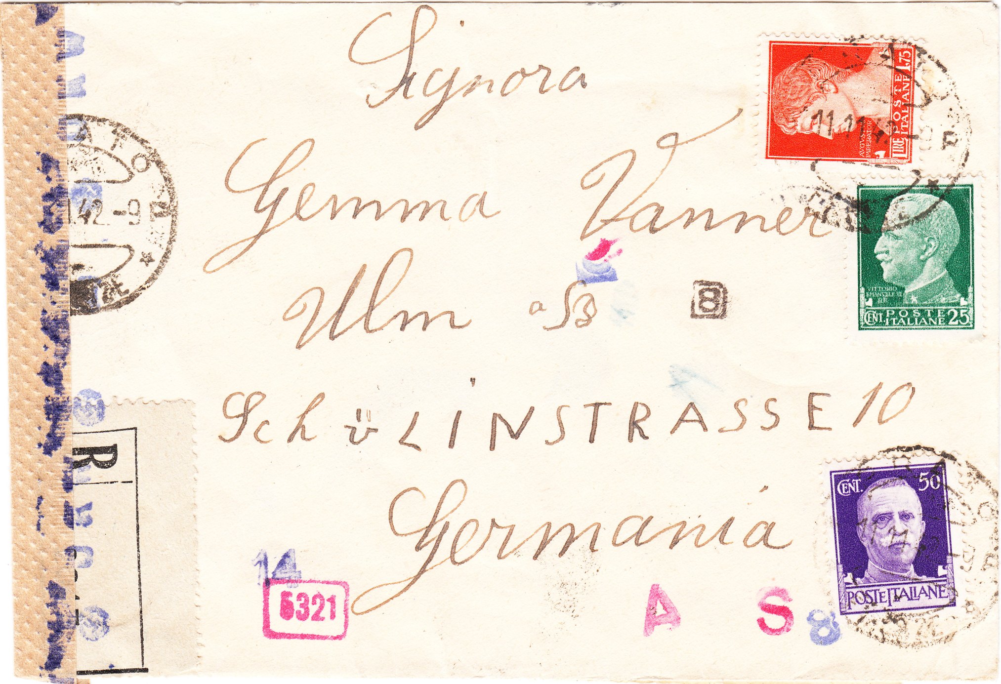 Dieser Brief per Einschreiben wurde am 11.11.1942 in Prato in der Toskana aufgegeben: