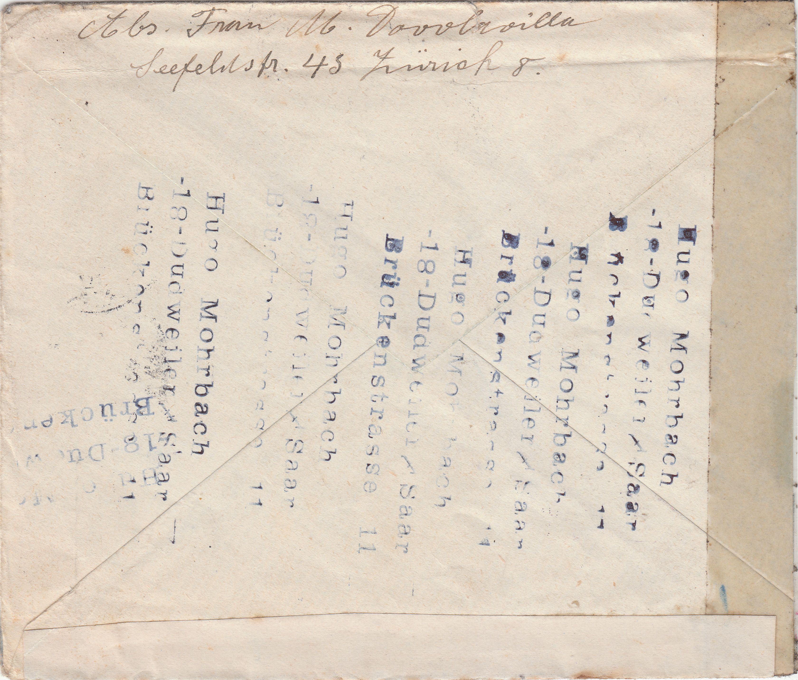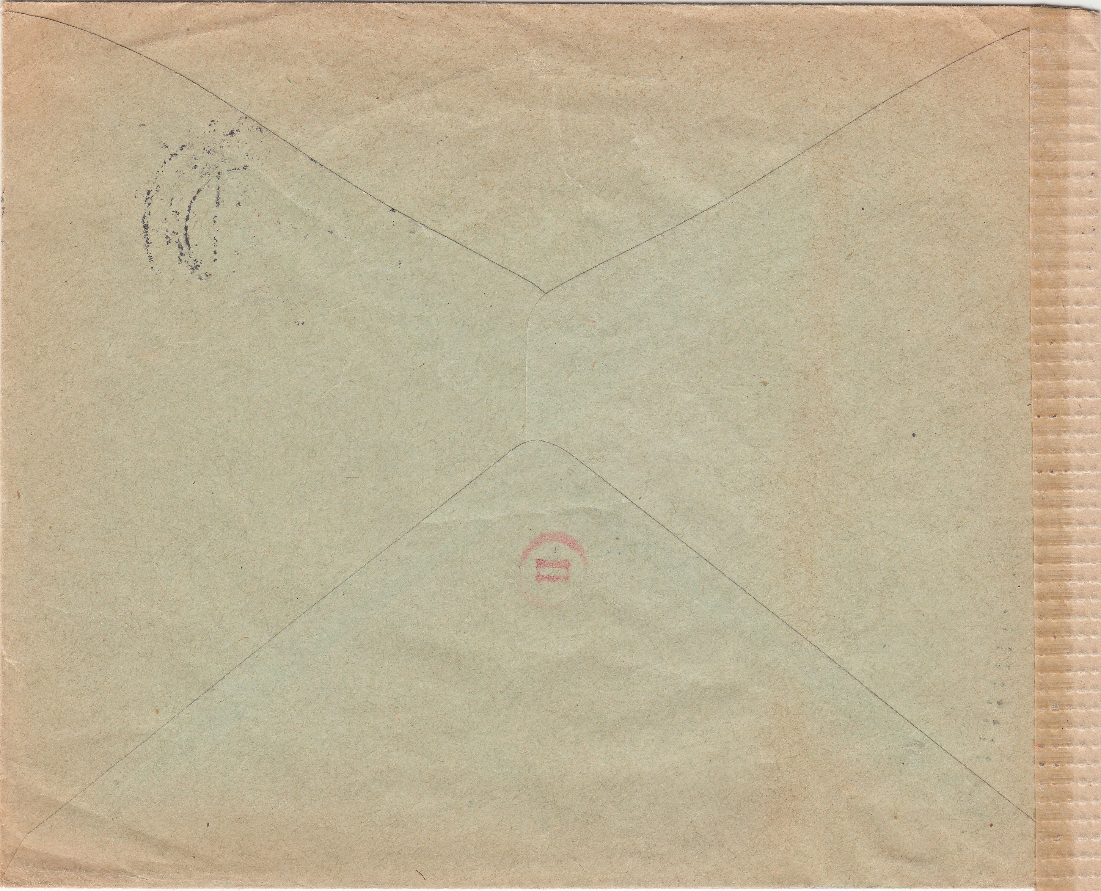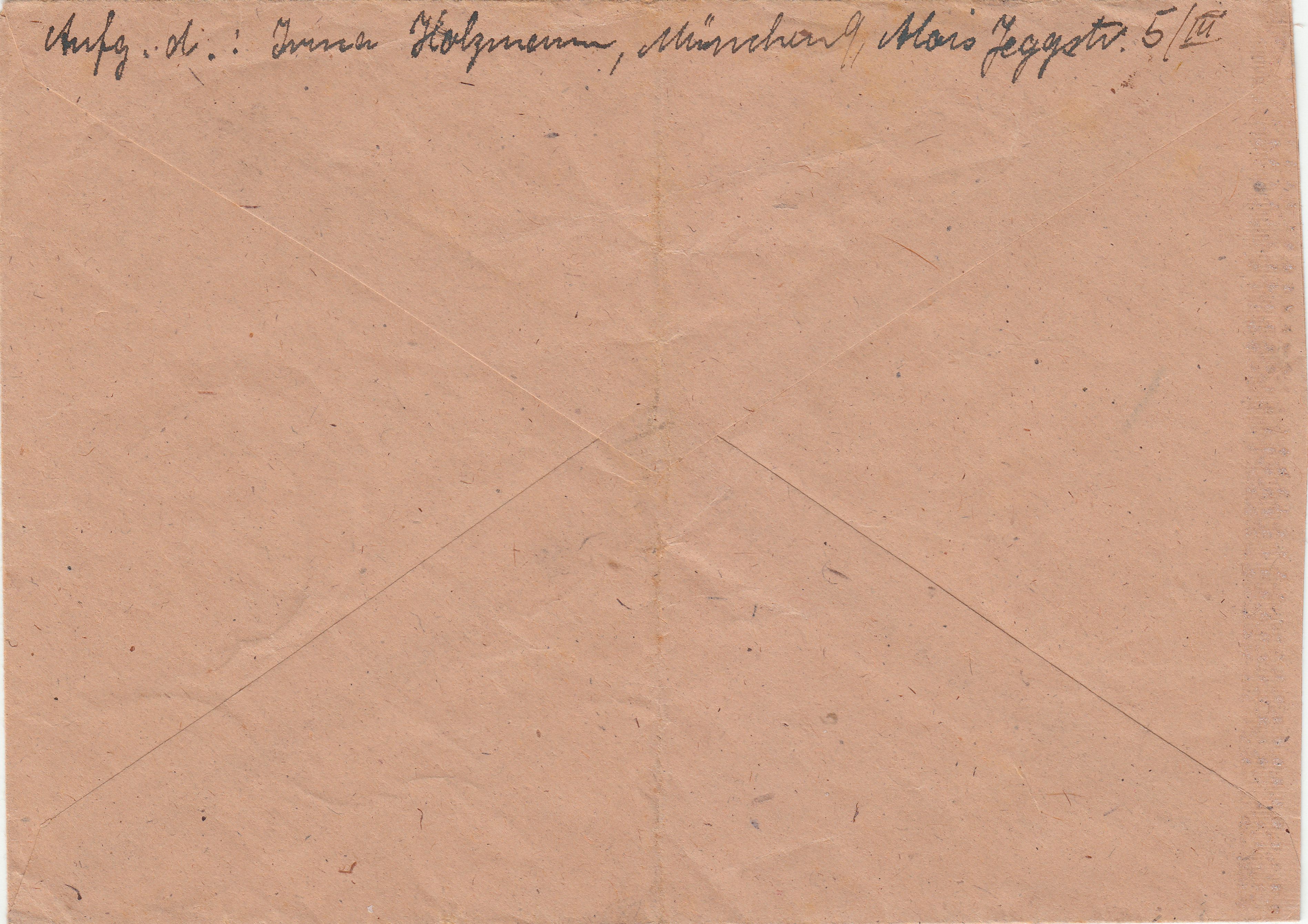 Diagonale Pinselstriche von links oben nach rechts unten vorderseitig sowie rückseitig dokumentieren, dass dieser Brief in der ABP München der chemischen Zensur unterzogen wurde.