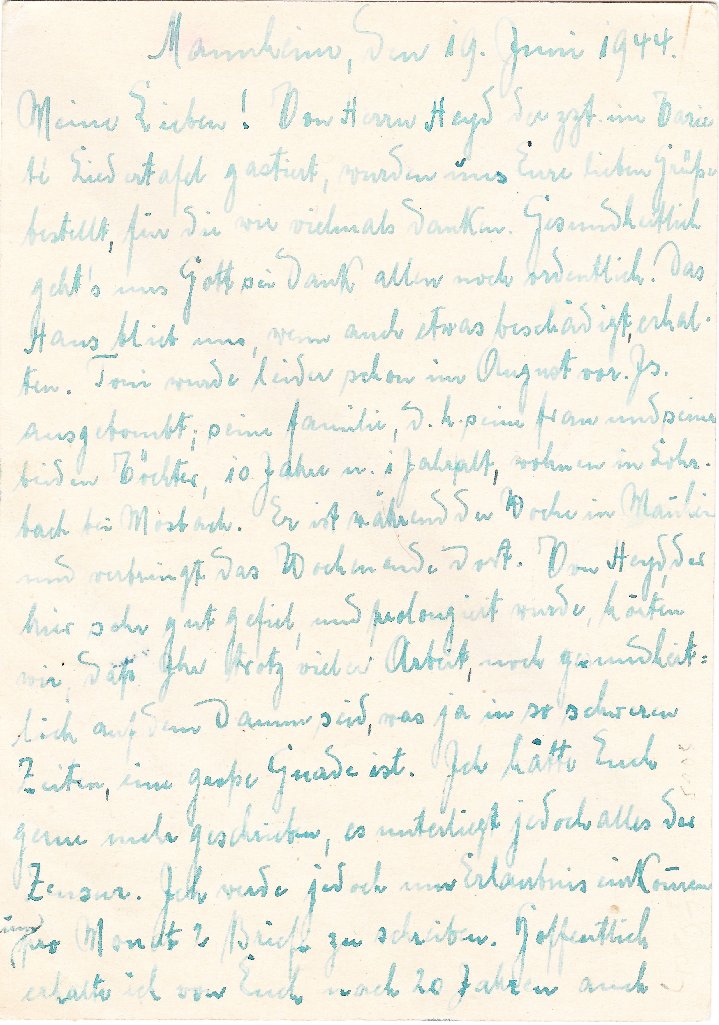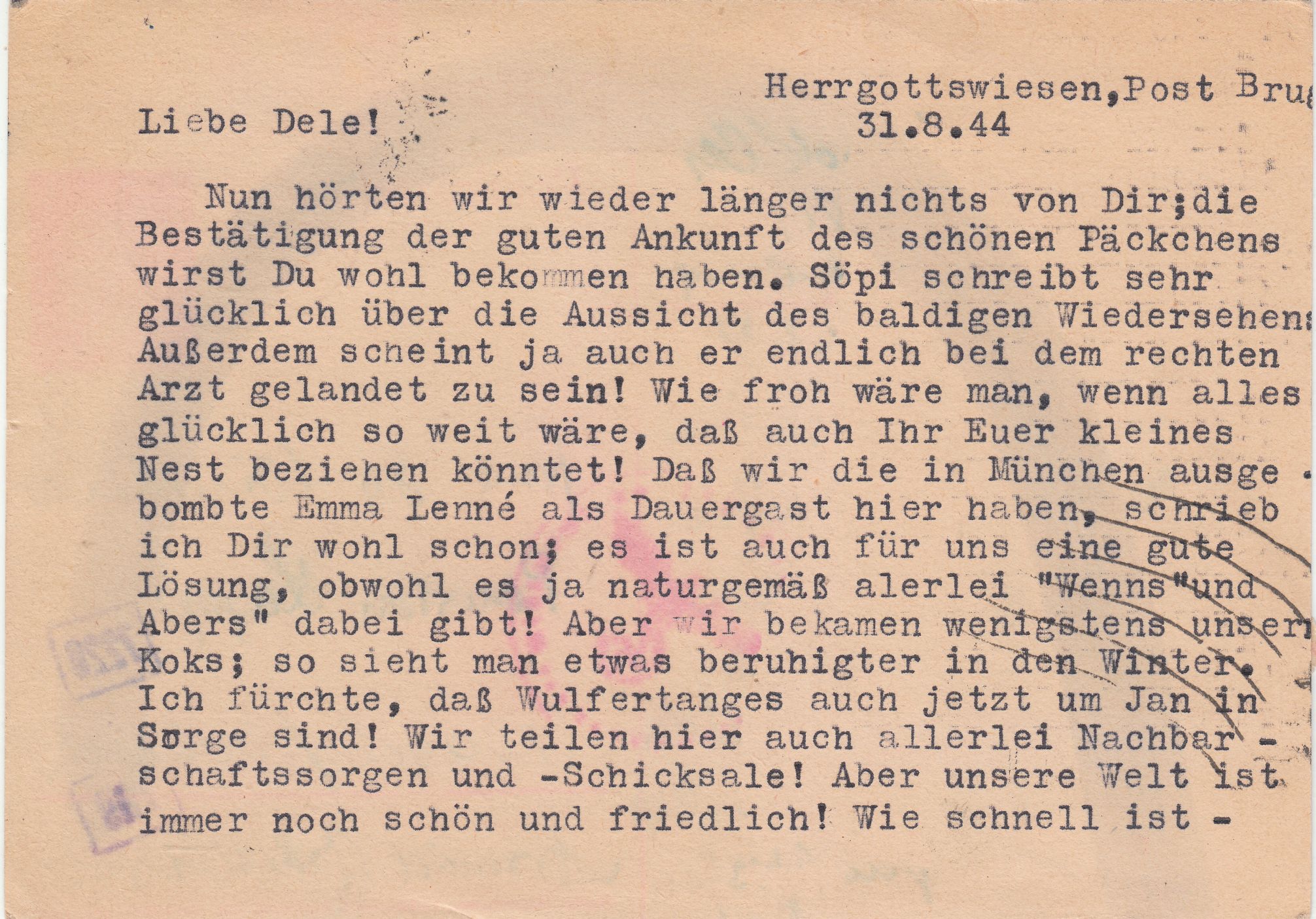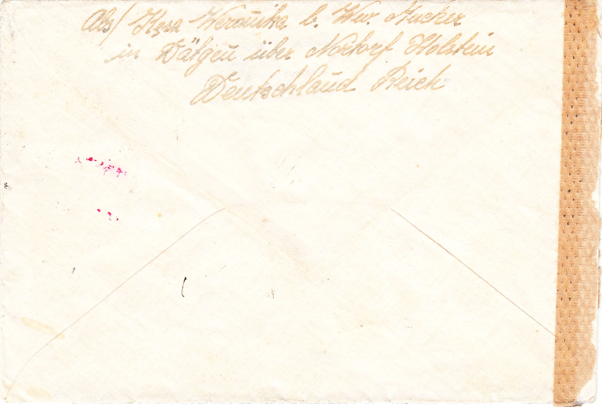 Diagonale Pinselstriche von links oben nach rechts unten vorderseitig sowie rückseitig dokumentieren, dass dieser Brief in der ABP München der chemischen Zensur unterzogen wurde.