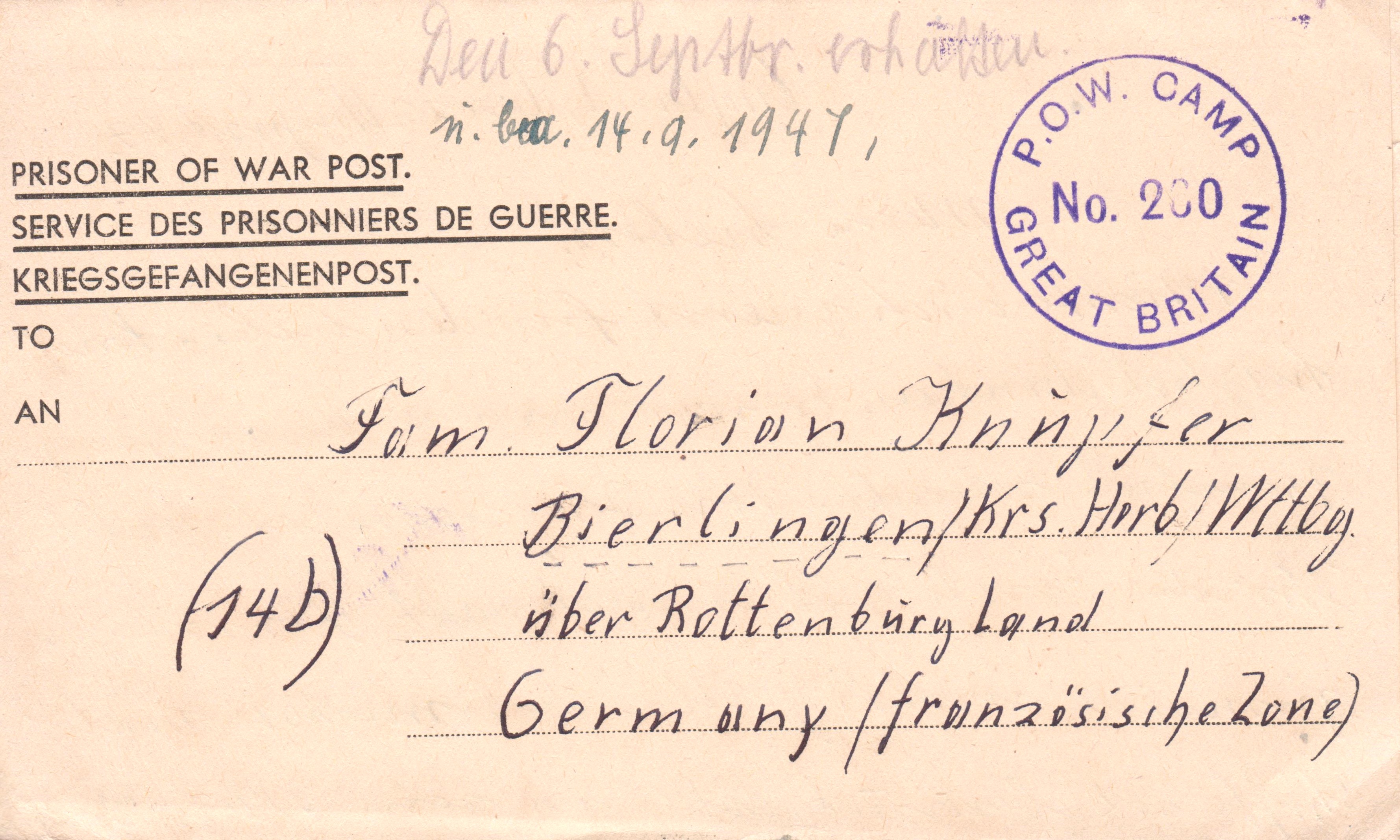 Foren-Übersicht Fragen und Diskussion Postgeschichte Zensurpost Zensurpost nach dem Zweiten Weltkrieg POW Camp 260 Suffolk