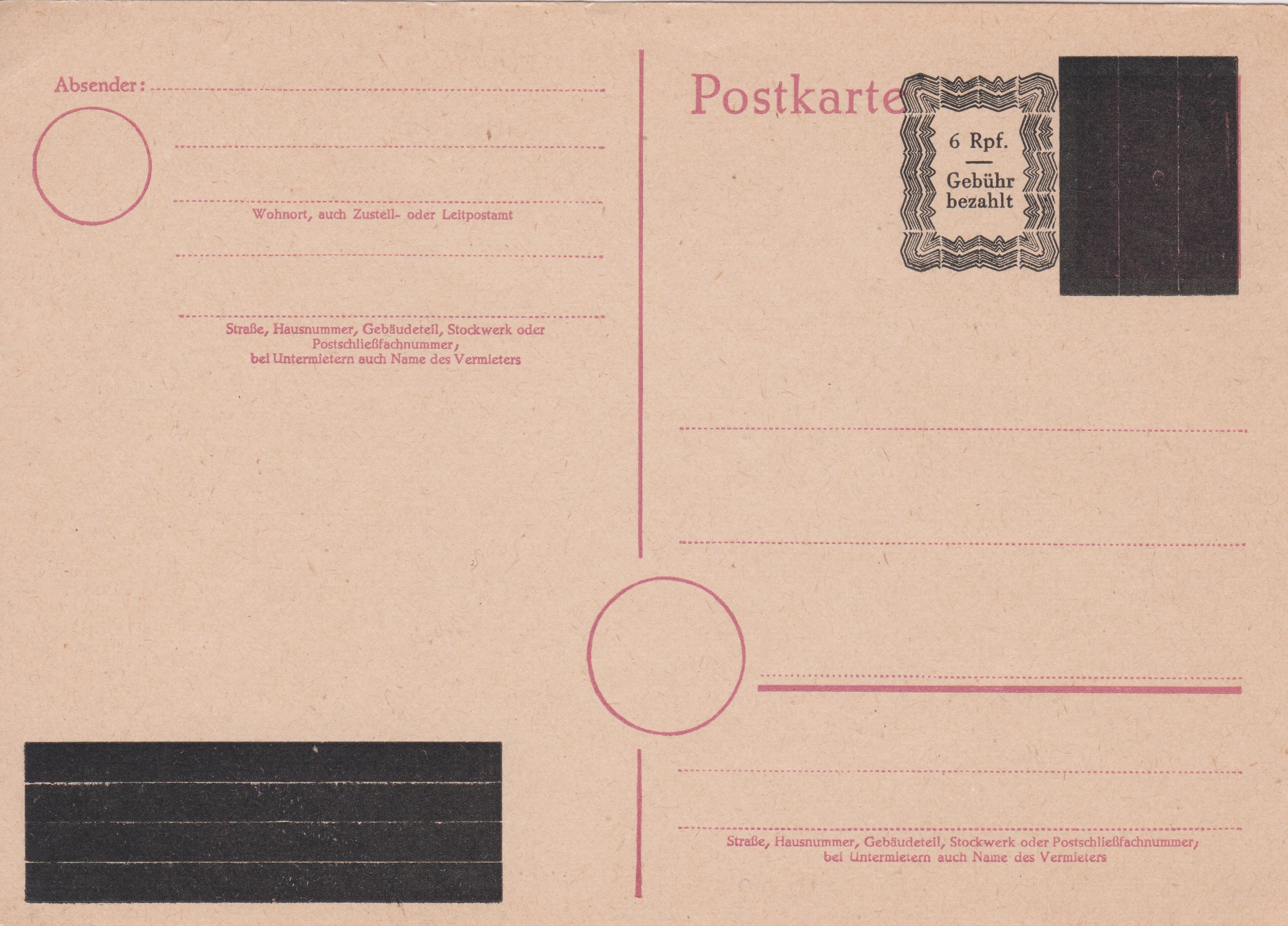 Neuer Werststempel "6 Rpf. Gebühr bezahlt":