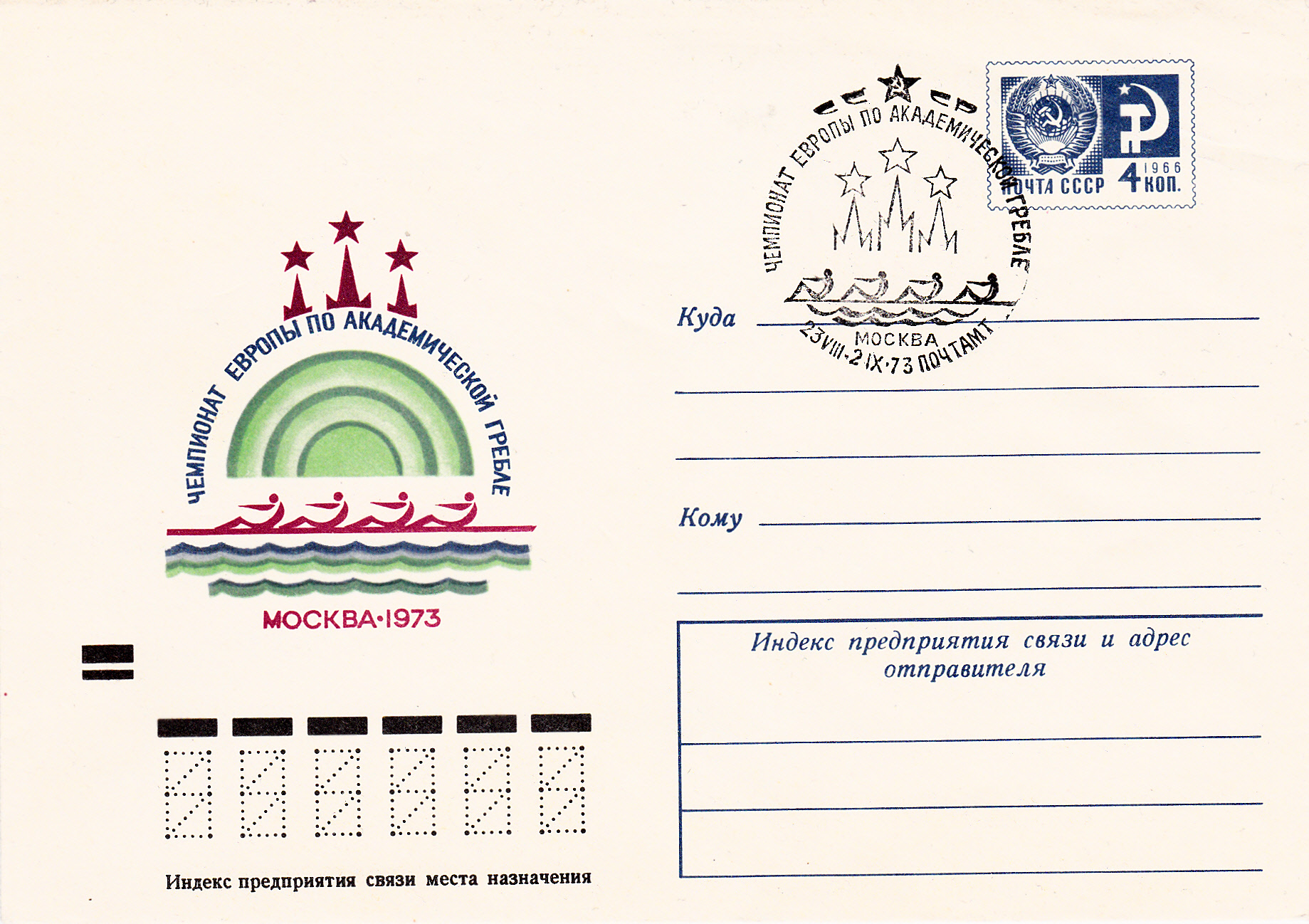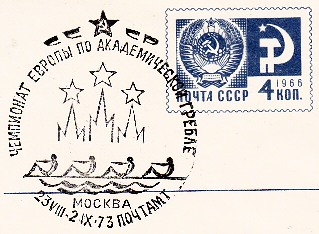 Sonderstempel aus Moskau zur Ruder-EM 1983 vom 23.8. - 2.9. 1973 in Moskau auf einem Ganzsachenumschlag zur Ruder-EM 1973. Der Umschlag ist leider nicht gelaufen.