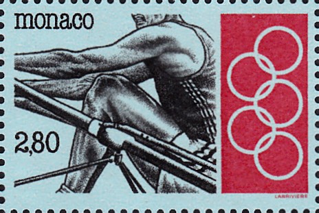 Aus Monaco kommt diese Marke (MiNr 2137) mit einem Teil eines Ruderers (vermutlich ein Einer).