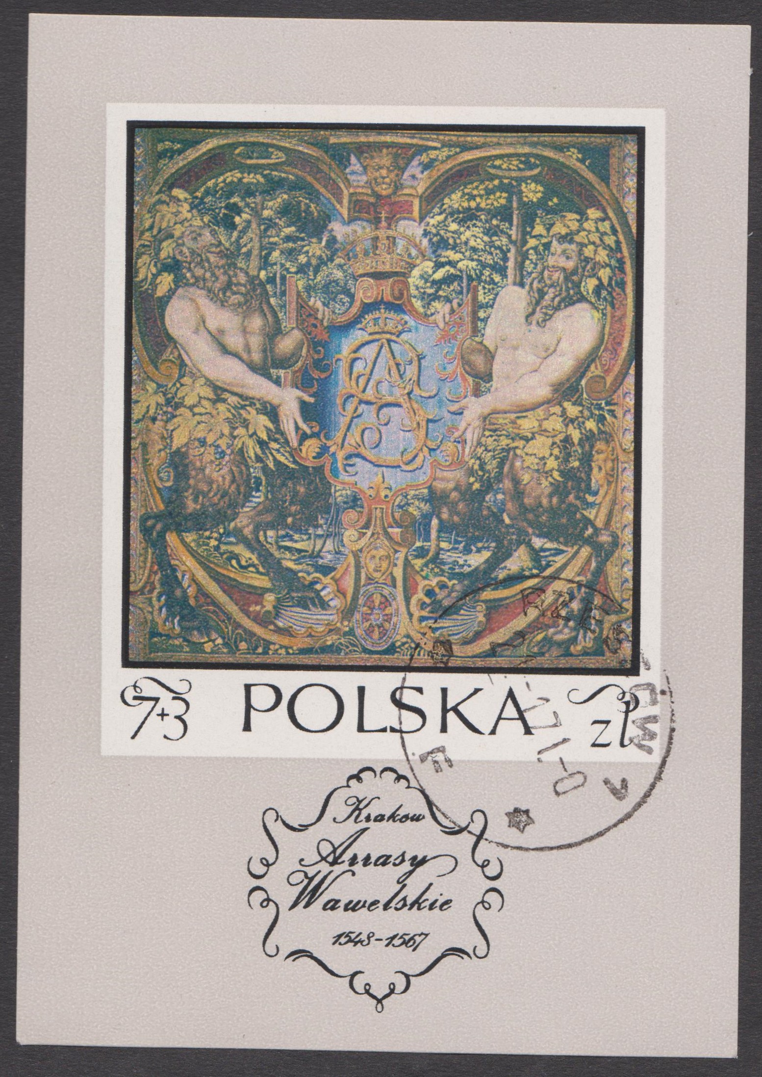 Polen Block 44 (MiNr. 2049) zeigt ein Schild mit Königsinitialen, gehalten von zwei Satyren: