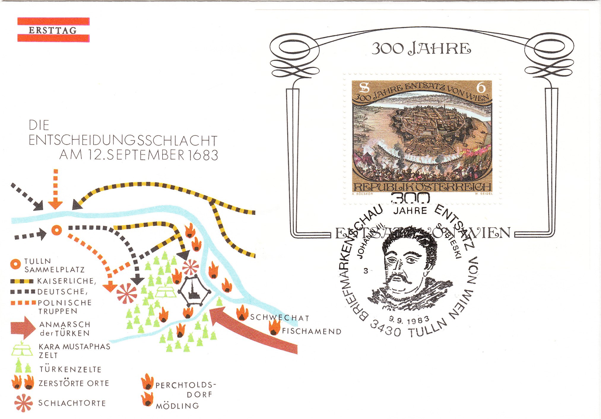 Diese zum 300. Jahrestag erschienene Blockausgabe aus Österreich illustriert das Geschehen:
