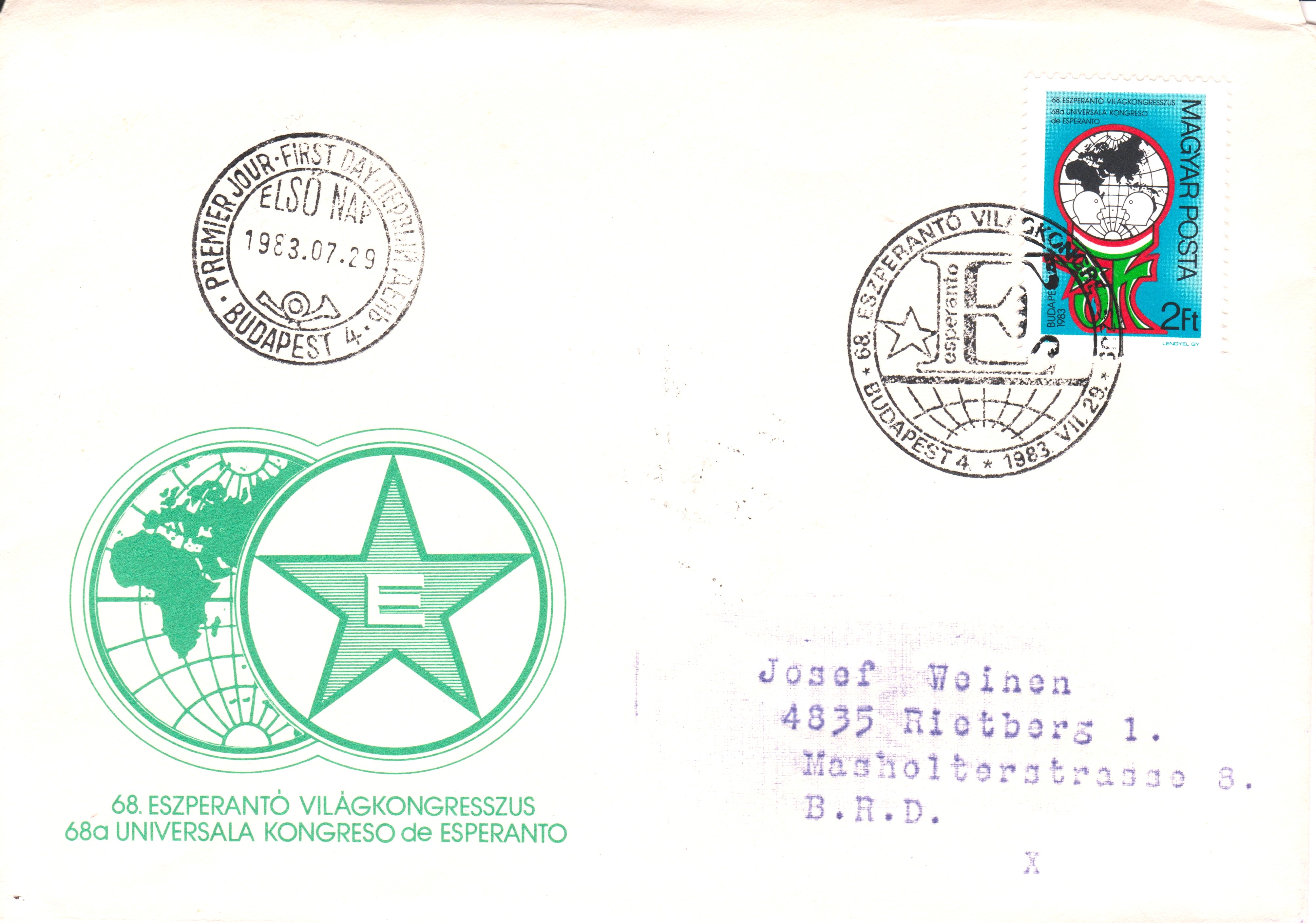 Dieser Beleg dokumentiert den 68. Esperantokongress, der 1983 in Budapest mit 4834 Teilnehmern stattfand: