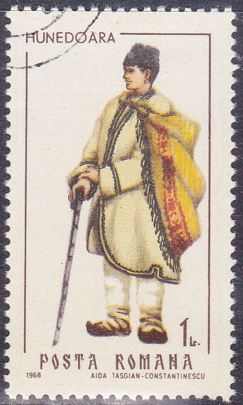 In der gleichen Serie aus dem Jahre 1968 erschien in Rumänien diese Marke (MiNr 2734) mit einer Frauentracht aus Hunedoara (eine Stadt in Rumänien; sie liegt im Kreis Hunedoara in der Region Siebenbürgen).