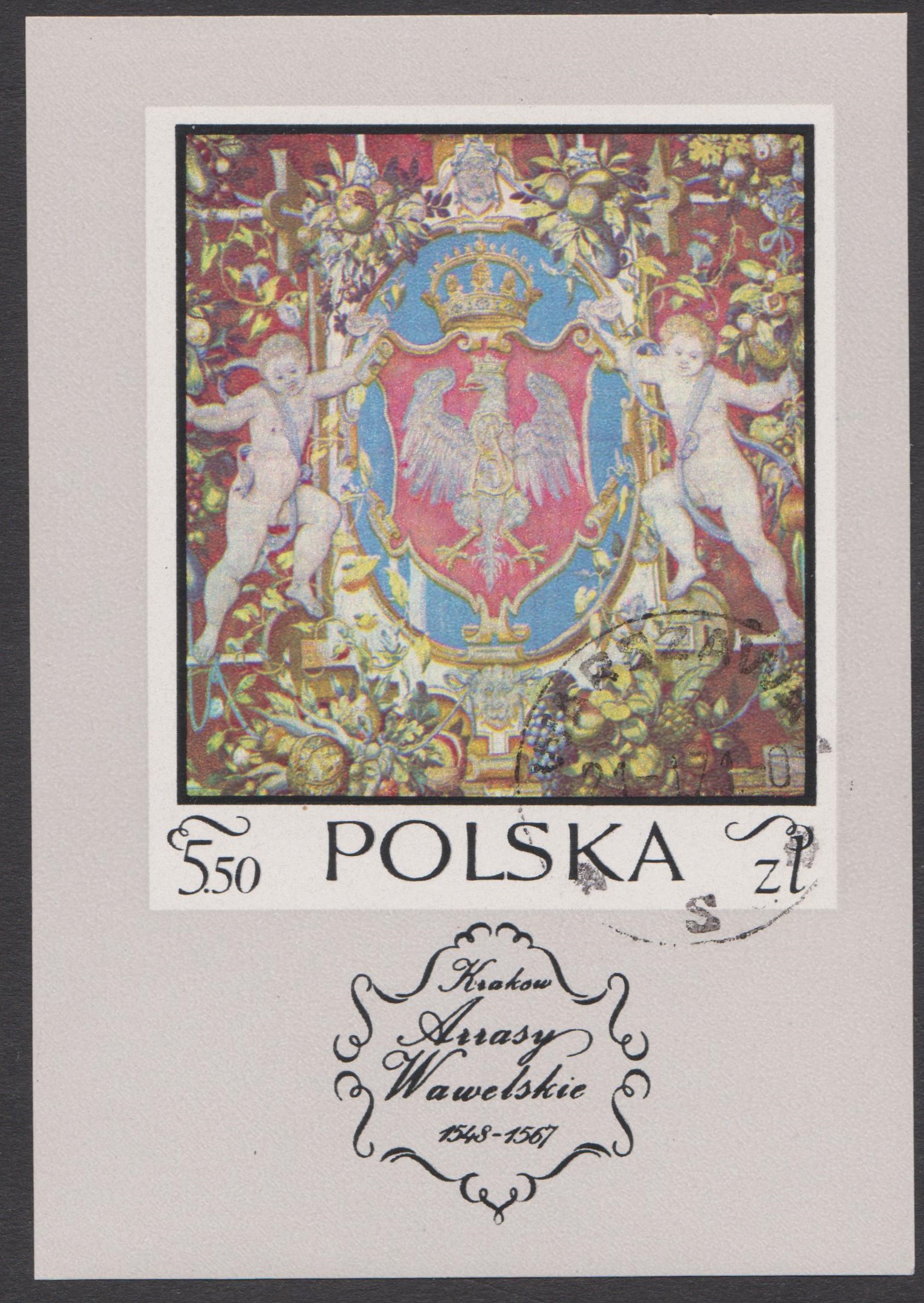 Polen Block 43 (MiNr. 2048) zeigt das Wappen Polens als Detail aus "Wappen Polens und Litauens und der Allegorie der Abundartia":