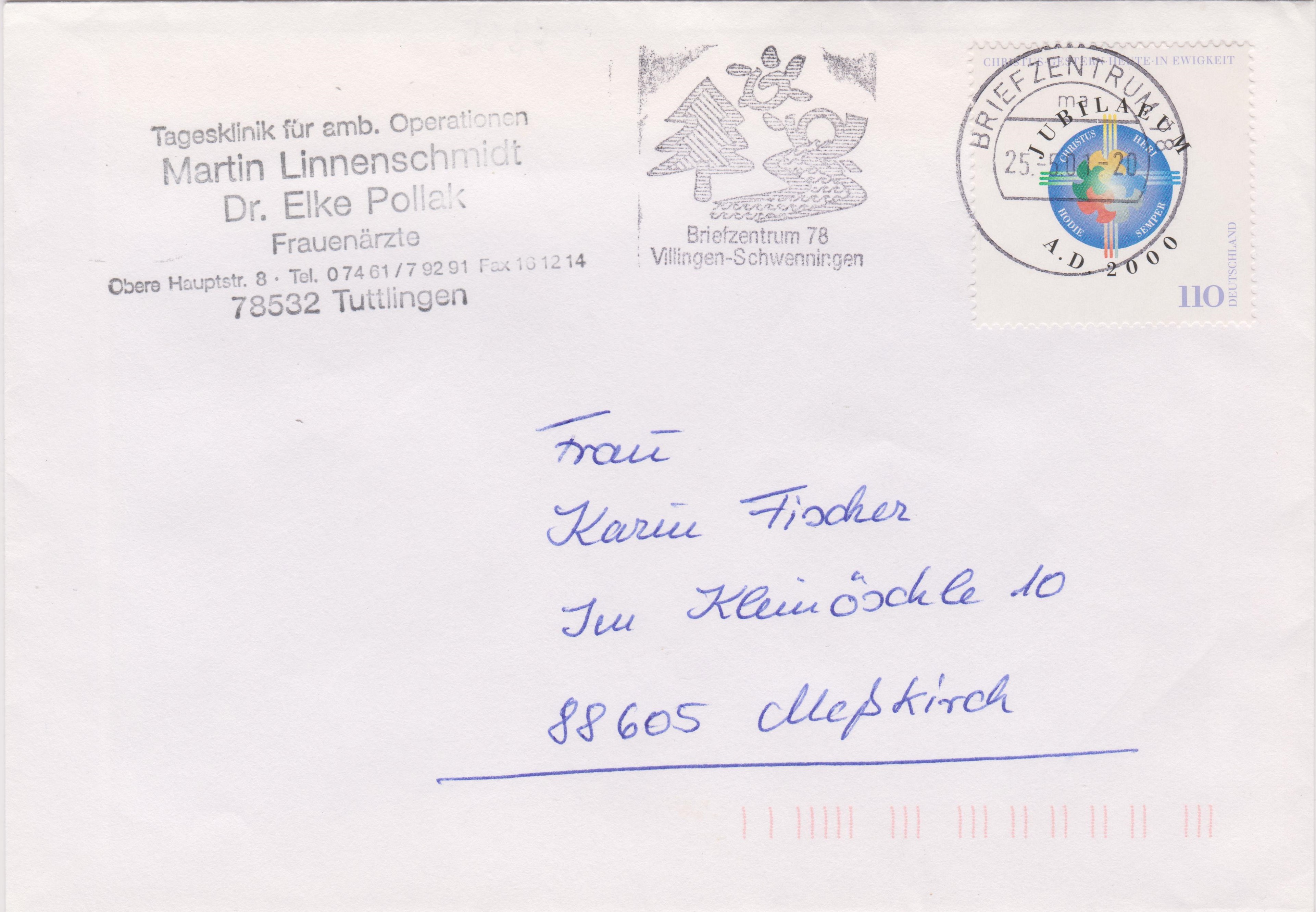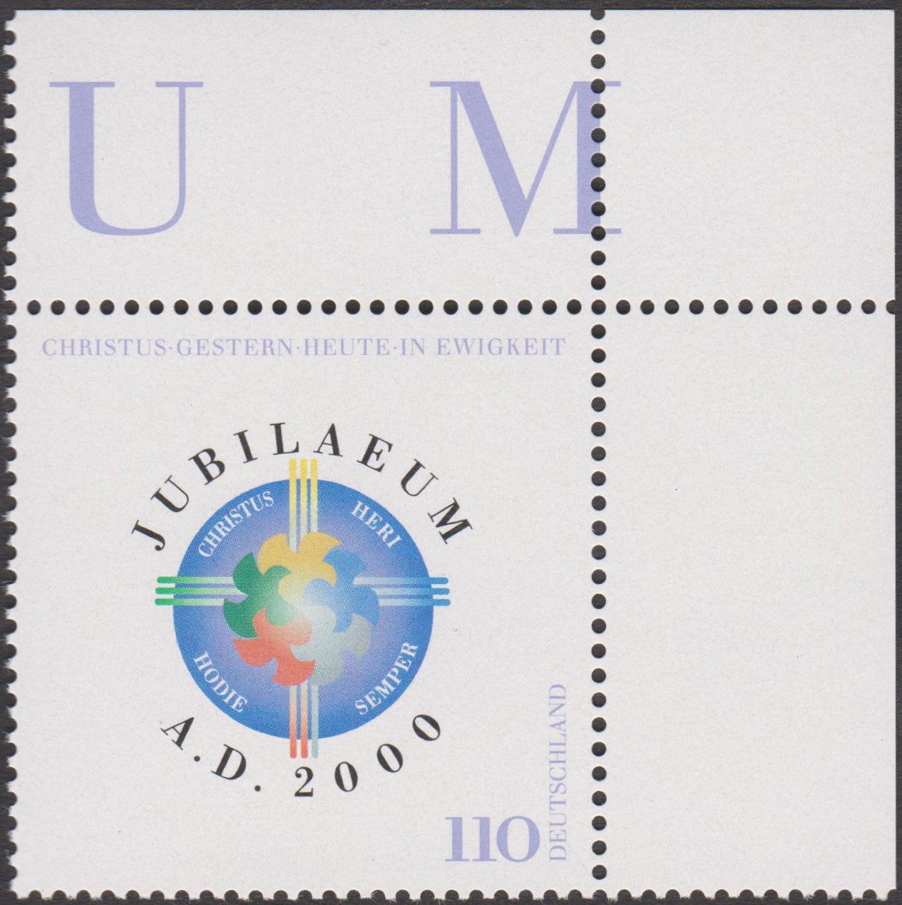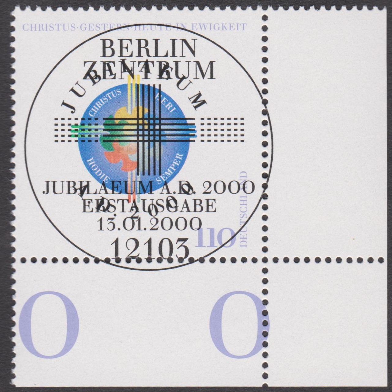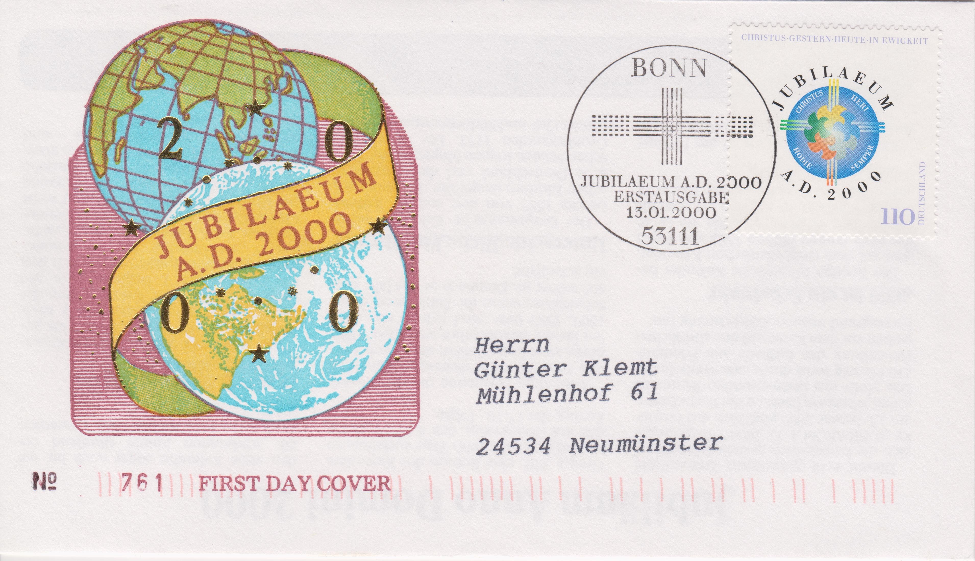 "JUBILAEUM A. D. 2000" lautet das Motto dieses Ersttagsblattes 1/2000 mit Bund MiNr. 2087: