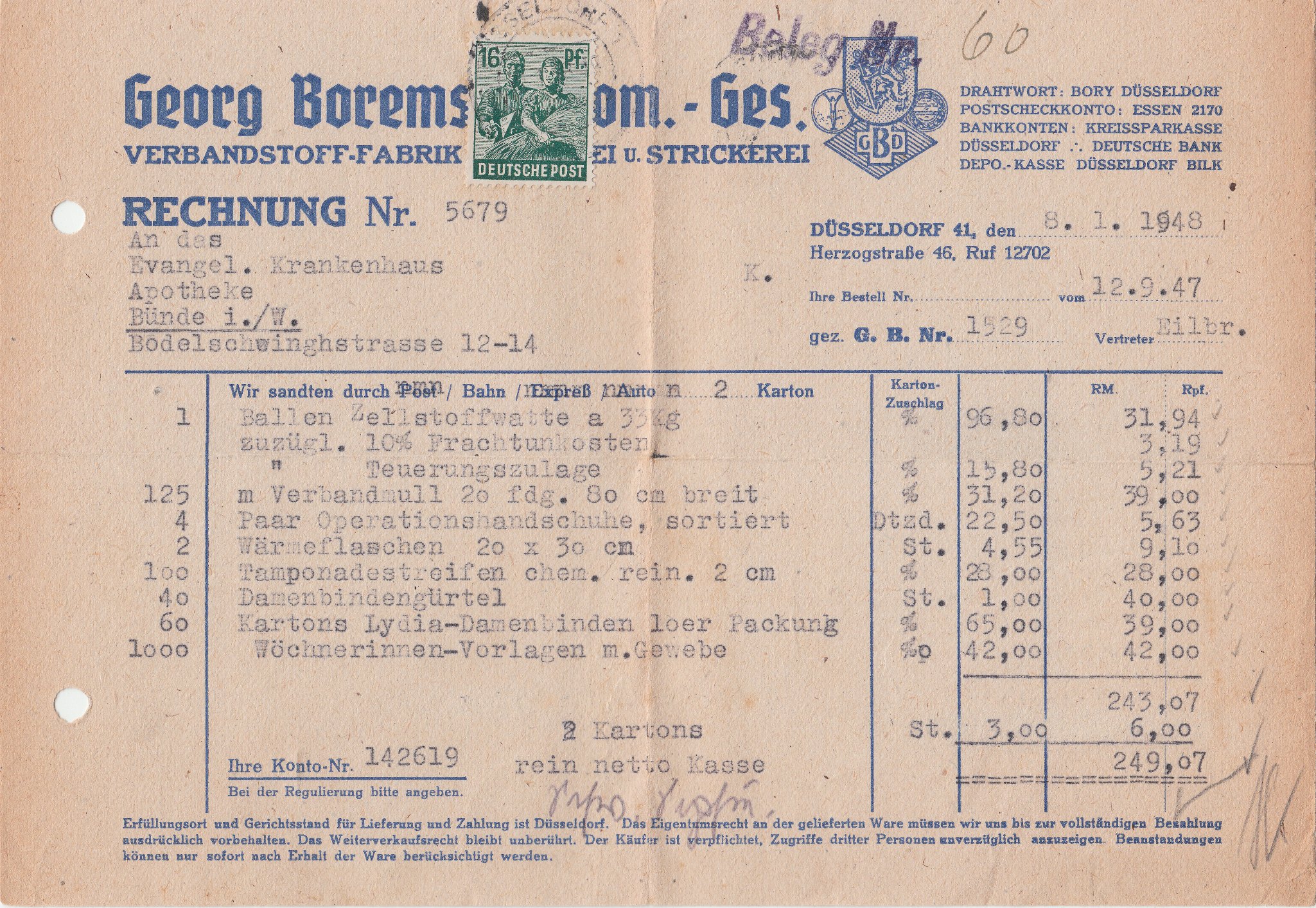 Ein Brief im Fernverkehr kostete im Januar 1948 24 Pf Porto.