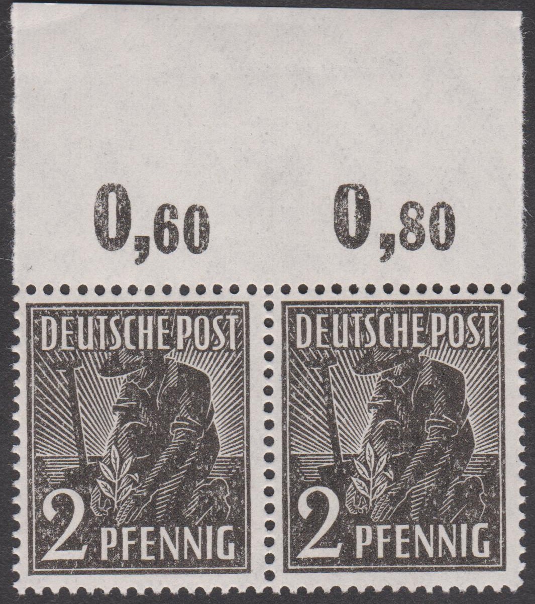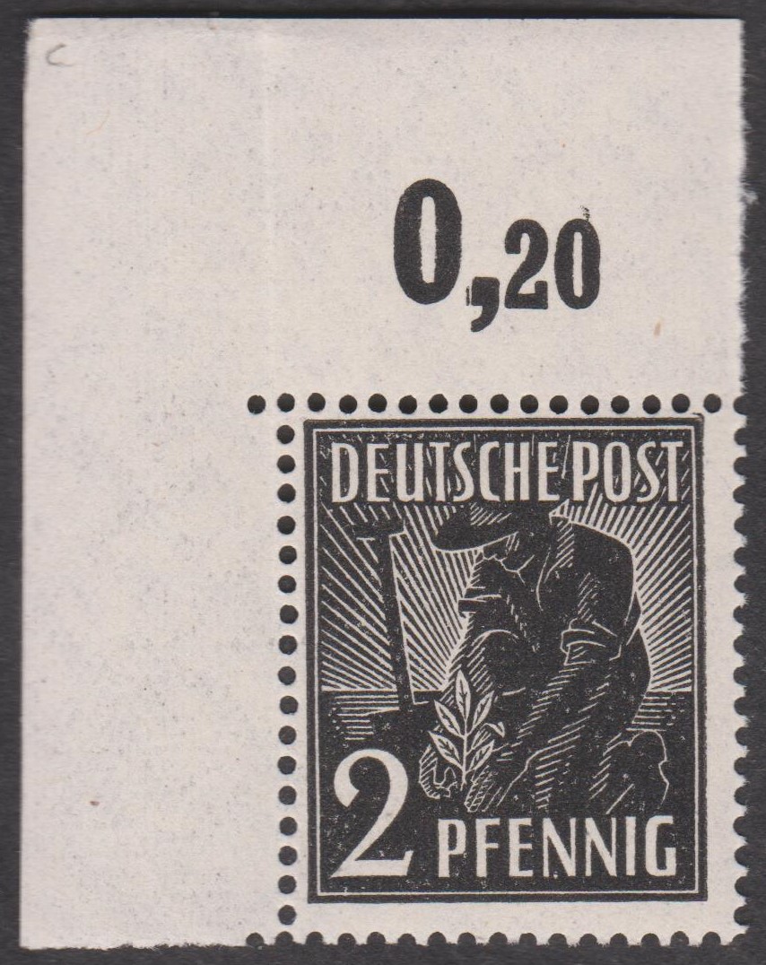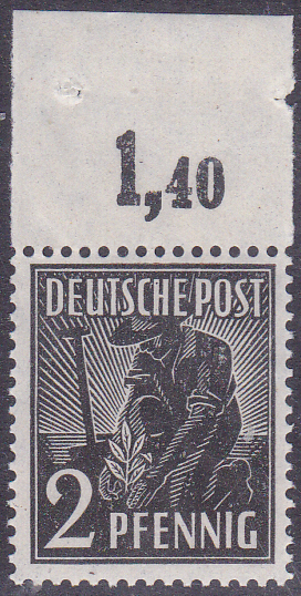 Hier zeige ich eine weitere Marke zu 2Pf vom Plattendruck vom Oberrand mit nicht durchgezähntem Oberrand.