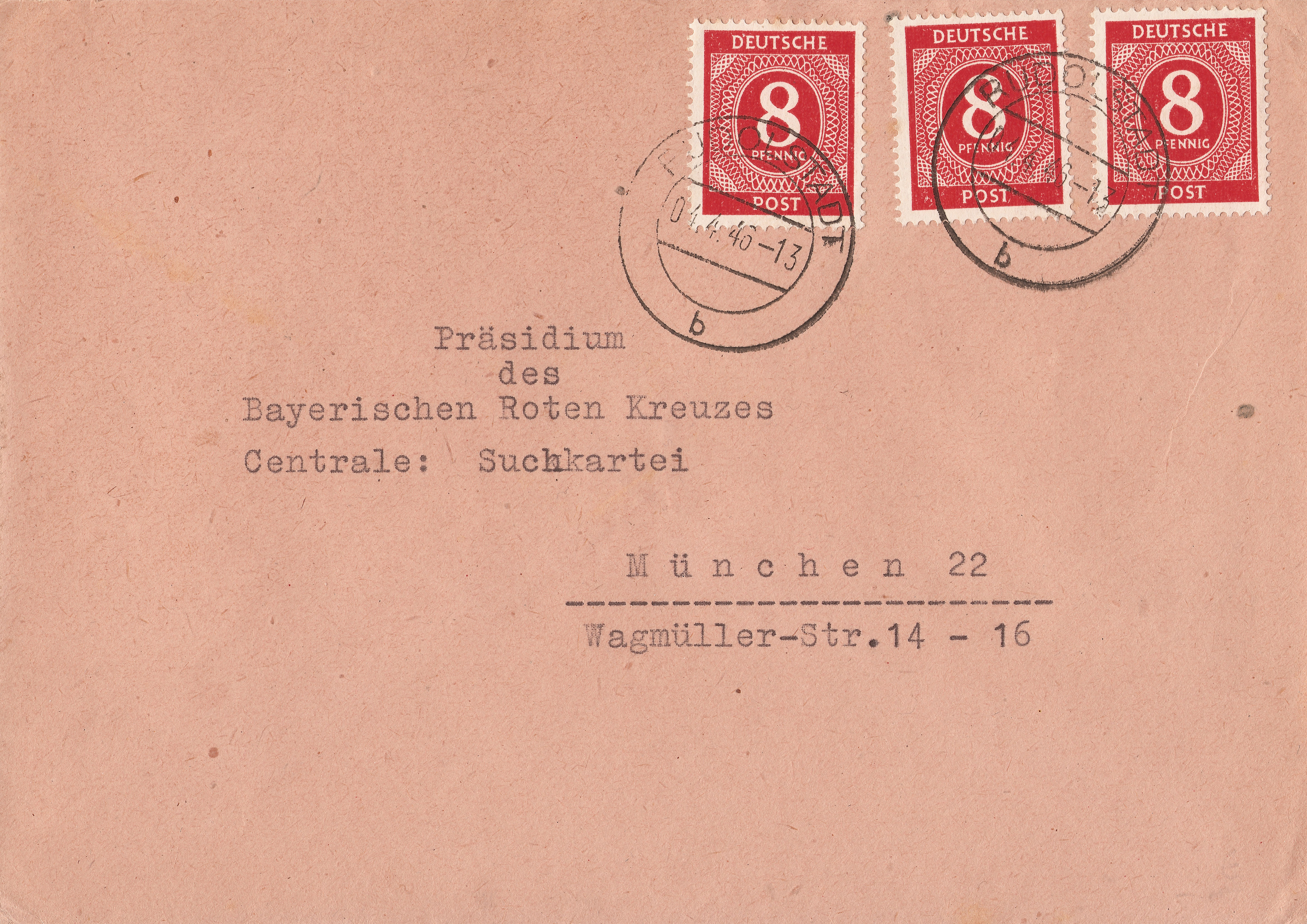Ein Fernbrief bis 20 g von Rudolstadt nach München, portogerecht frankiert mit 3x8 Pf.