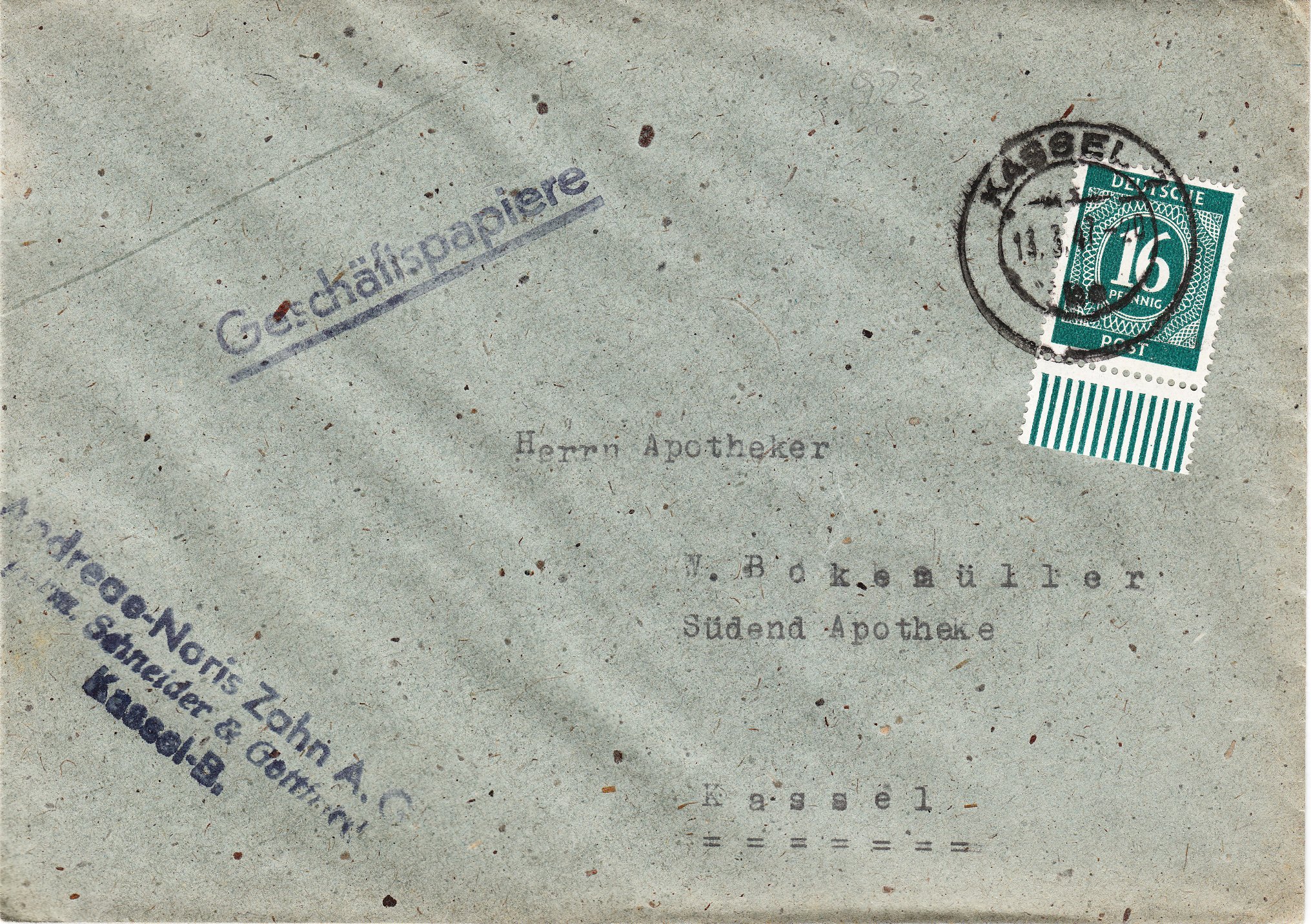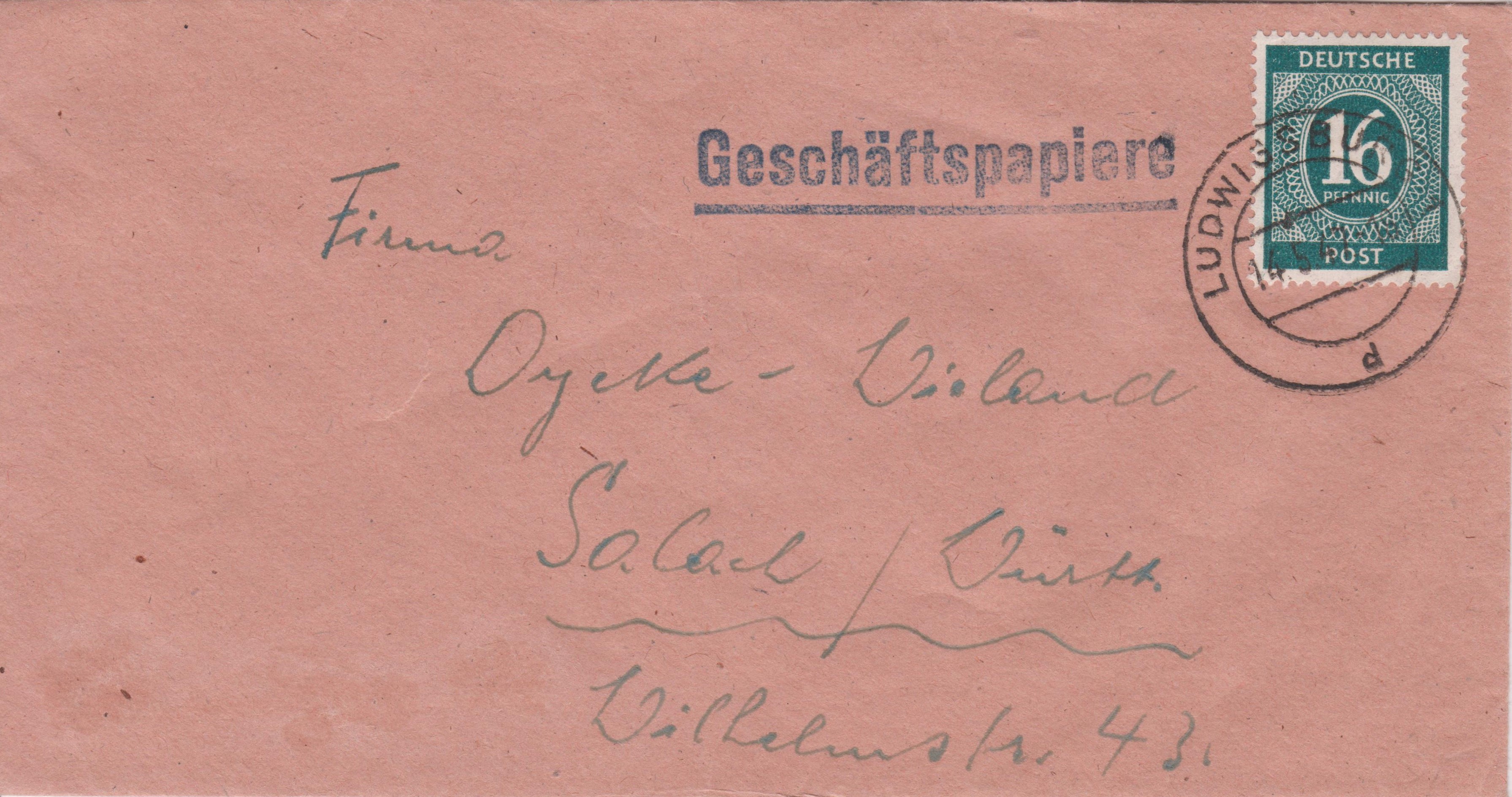 Die MiNr. 923 ist als EF recht häufig auf der Sendungsart "Geschäftspapiere" zu finden. Hier ein Beispiel vom 20.11.1946 von Wuppertal nach Winterborn: