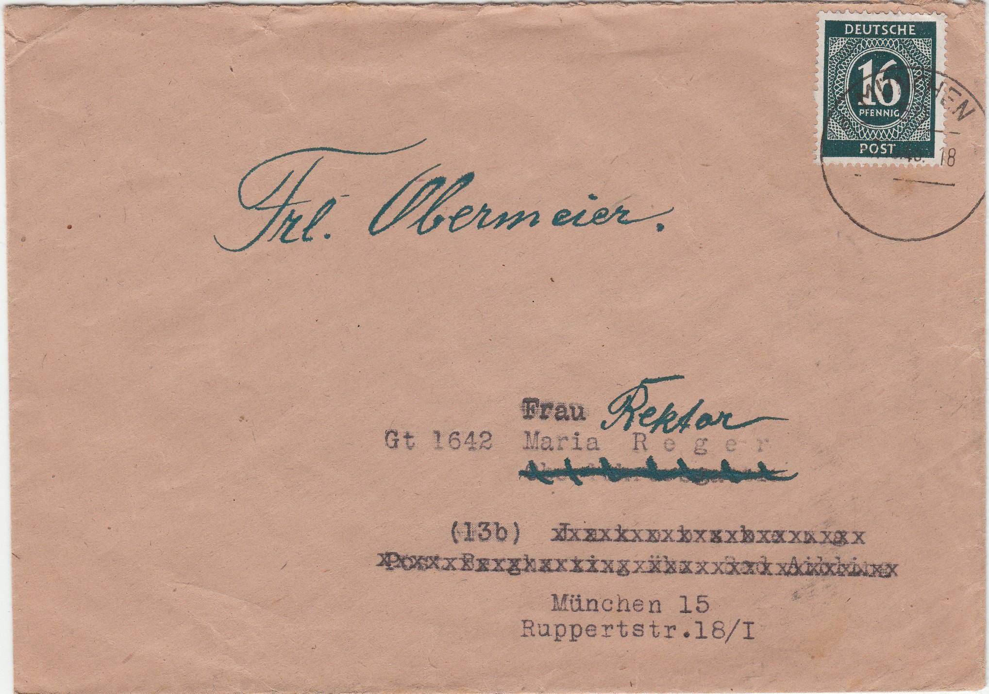 Portogerechten EF der MiNr. 923 auf "Postscheckbrief" (= Ortsbrief) am 02.12.1947 in München gelaufen: