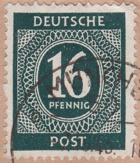 Beim 16 Pf Wert der Kontrollrat-Ziffernserie kommt bei einigen HAN's, also einer Teilauflage, auf Feld 10 im Oberrand, also beim Eckrand 2, der Plattenfehler "Kerbe in der 1. Null des Reihenwertzählers 16,00" vor: