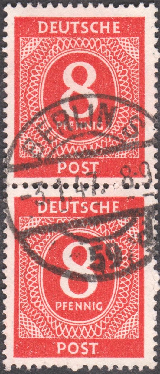 MiNr. 917 aa orangerot als Zweierstreifen mit Tagesstempel BERLIN S 59 vom 03.01.1947: