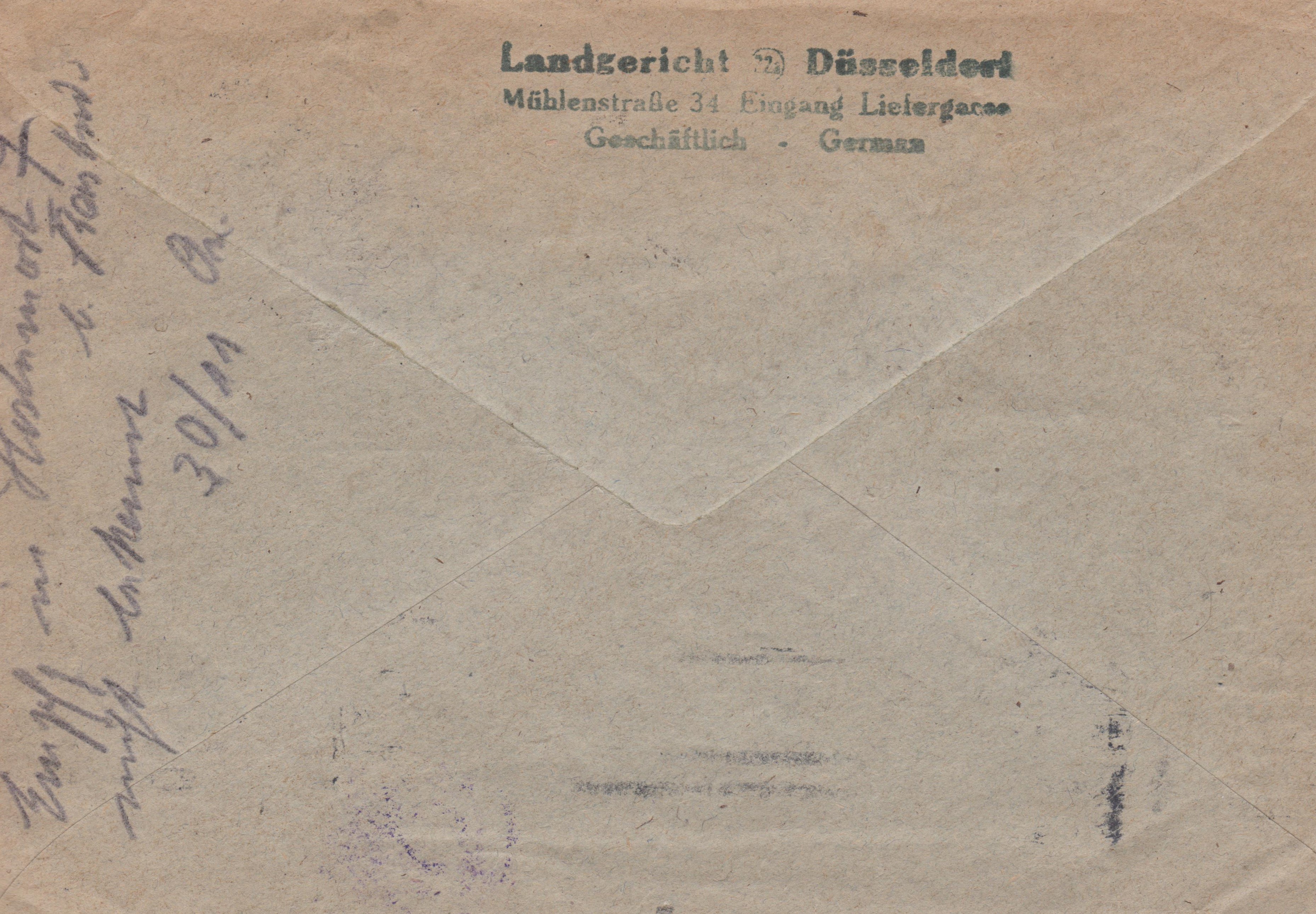 Einzelfrankatur MiNr. 925 am 07.08.1946 auf Brief vom Landgericht Düsseldorf, portogerecht im Fernverkehr von (22) DÜSSELDORF nach 10 Grosskötner über Hettstedt: