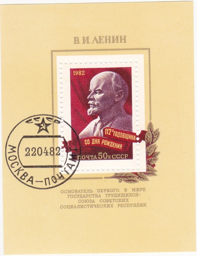 Und auch den absolut nicht runden Geburtstag Nummer 112 hat man zelebriert und mit einer Briefmarke gewürdigt, wie man an dieser Ausgabe der Sowjetunion sehen kann: