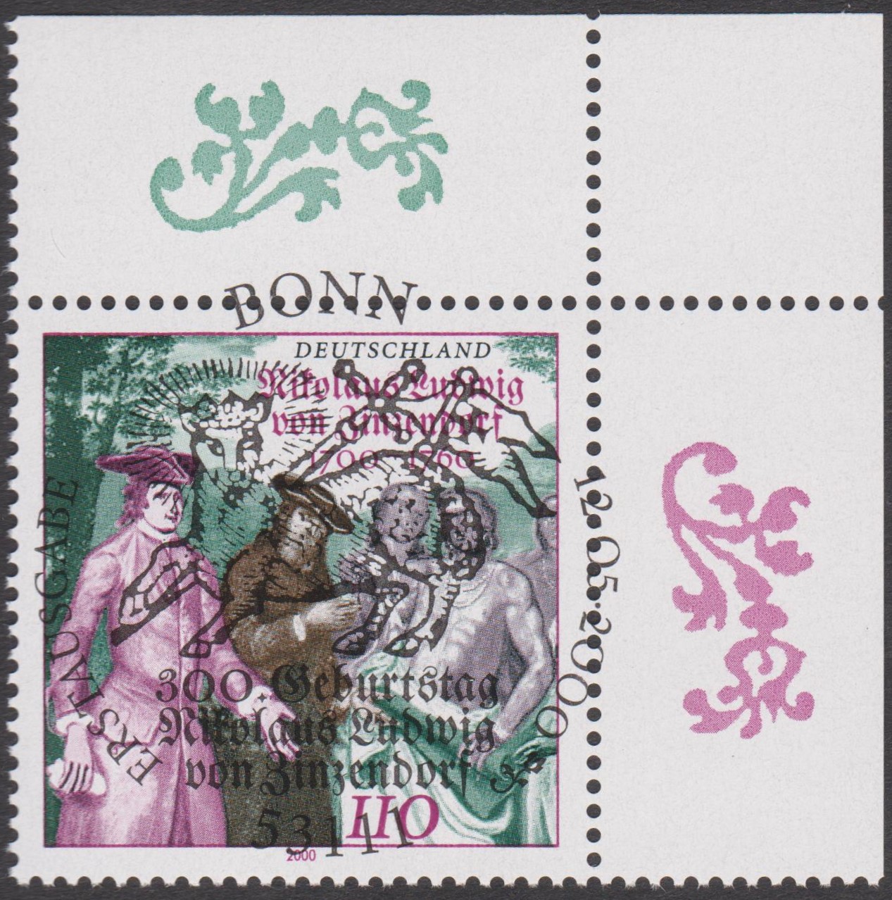 ZU seinem 300. Geburtstag erschien am 12.05.2000 dieses Sonderpostwertzeichen, hier auf ETB 23/2000 mit ESST BONN: