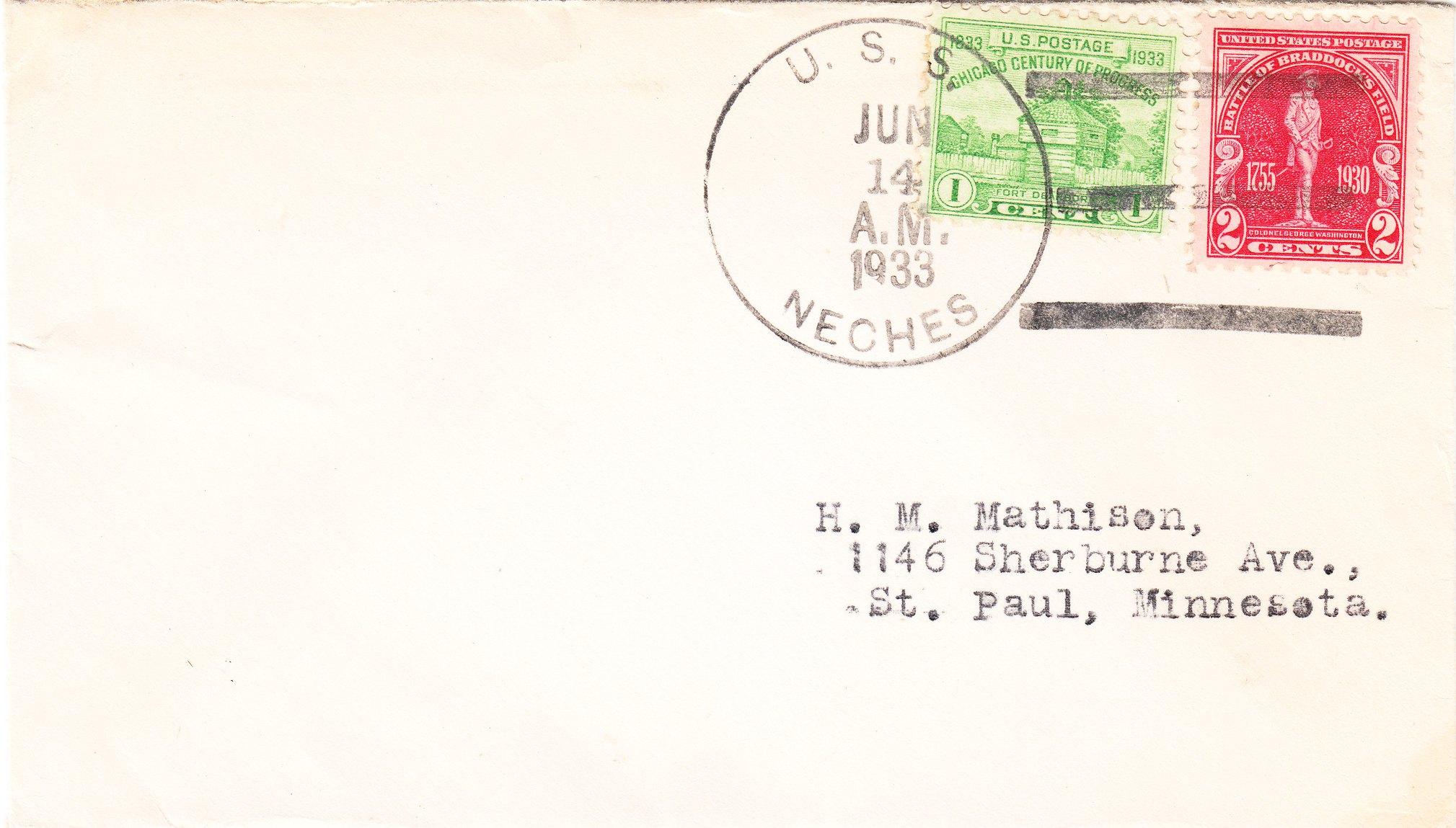Hier ein Beleg, der am 14.06.1933 auf der USS NECHES aufgegeben wurde: