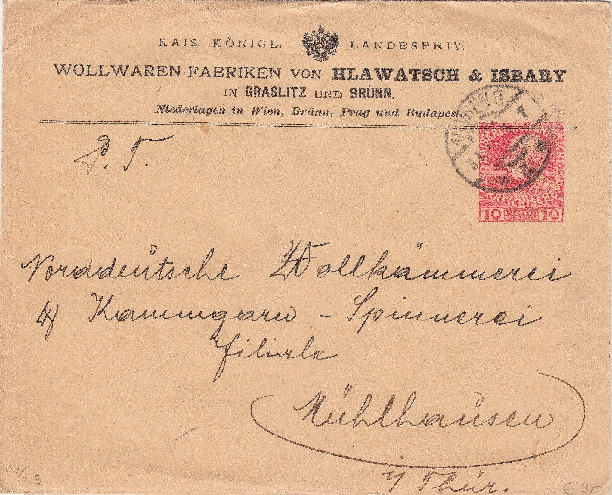 Privatganzsache aus Österreich mit Werbung für "WOLLWAREN FABRIKEN", gebraucht am 31.01.1911 ab Wien: