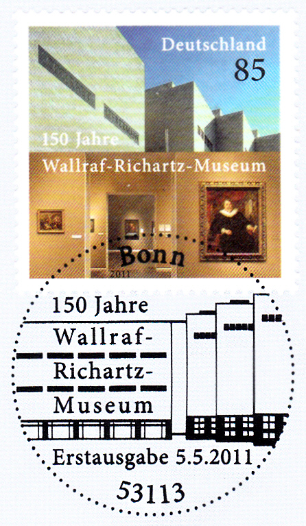 Zum Thema "150 Jahre Wallraf-Richartz-Museum in Köln" erschien bei der Deutschen Post diese Marke (MiNr 2866) mit einer Abbildung der Außenansicht des Museums und einem Blick in die und Barockabteilung.