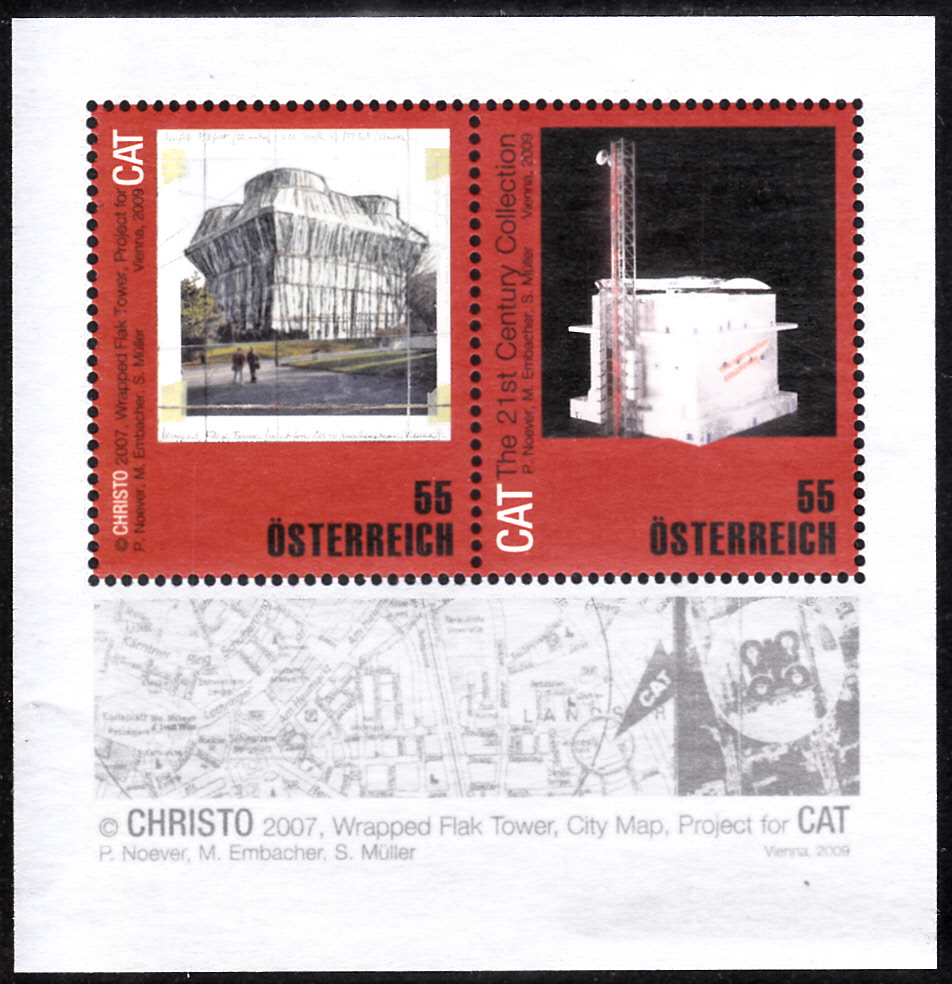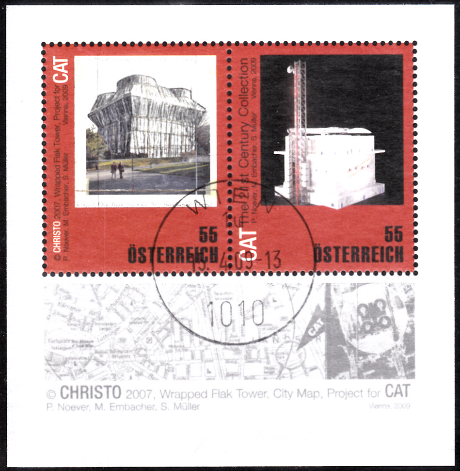 In Österreich ist in einer Blockausgabe diese Marke (MiNr 2801) mit seinem Werk "Umhüllte Flaktürme im Arenbergpark" in Wien.
