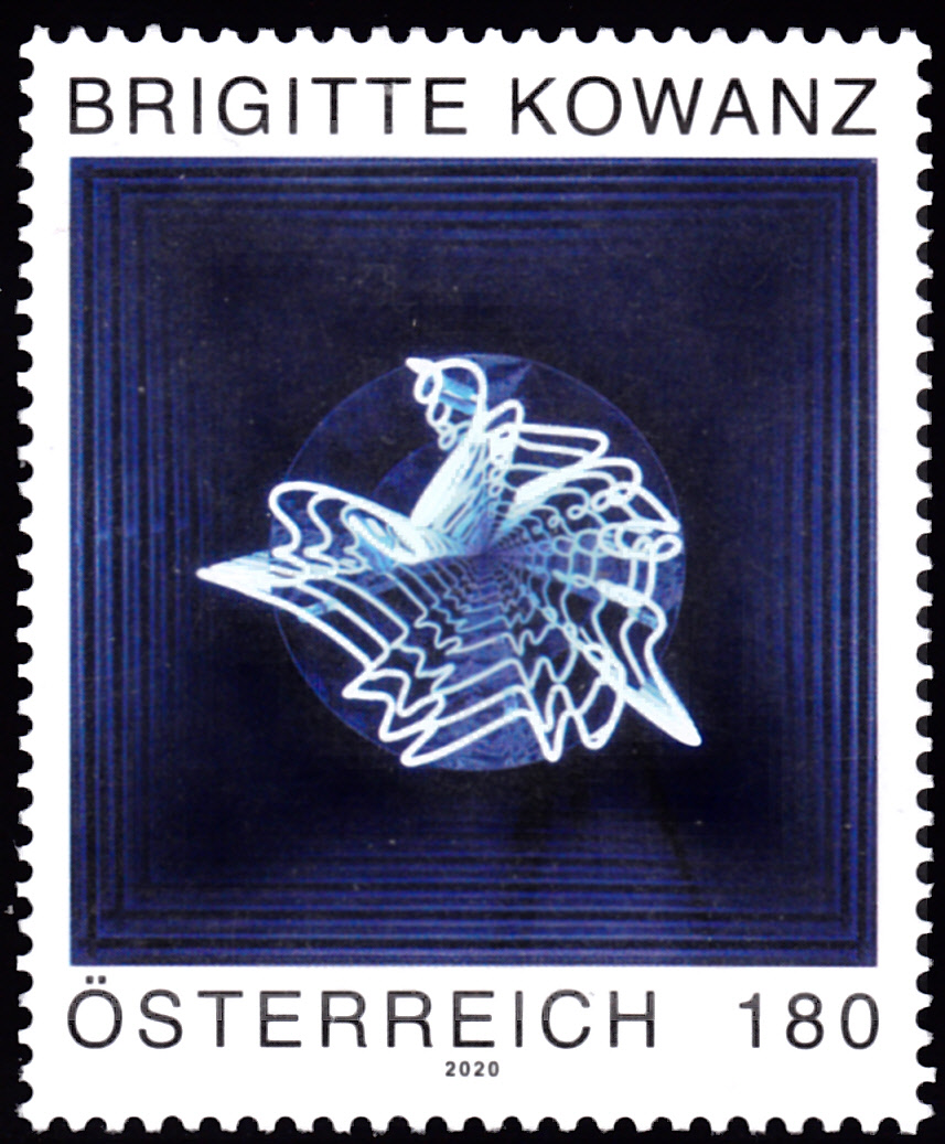 Auf dieser Marke (MiNr 3511) aus der österreichischen Serie "Zeitgenössische Kunst" wird das Werk "Opportunity", eine Lichtinstallation von Brigitte Kowanz gezeigt.