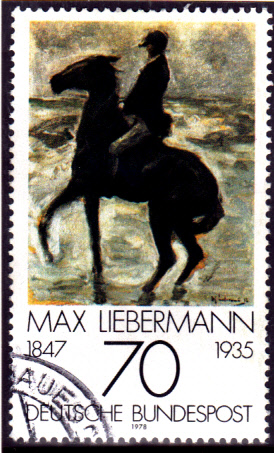 Auf dieser Marke von 1978 aus der Bundesrepublik MiNr. 987 ist der "Reiter -nach links- am Strand" abgebildet. Das Werk entstand 1912.