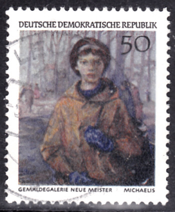 Aus der DDR kommt diese Marke (MiNr 1397) mit dem Gemälde "Oberschülerin Petra" von Paul Michaelis.