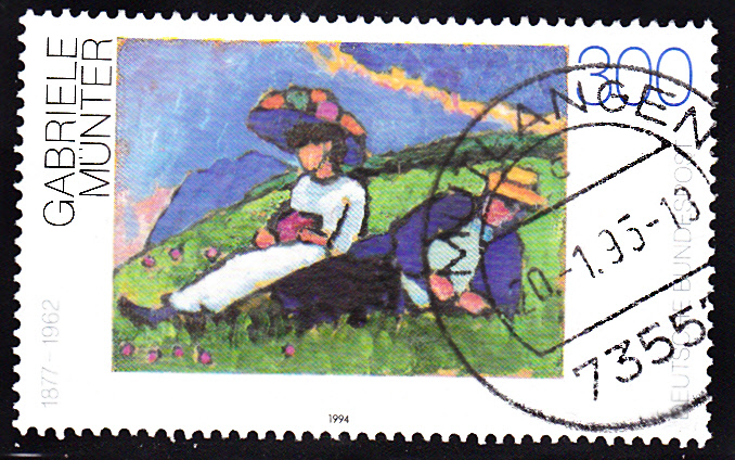 In der Serie "Deutsche Malerei des 20.Jahrhunderts" erschien am 11.8.1994 auch eine Marke (MiNr 1750) mit dem Gemälde "A. von Jawlensky und M. von Werefkin auf einer Wiese bei Murnau" (1909) von G. Münter.