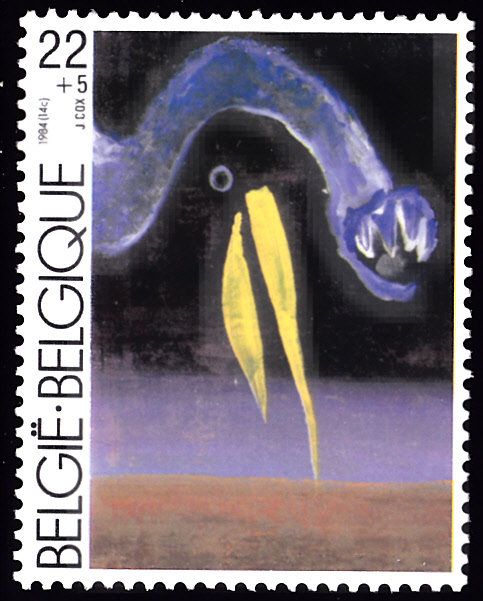 Zur Einweihung des Museums für moderne Kunst in Brüssel ist in Belgien diese Marke (MiNr 2195) mit einem Ausschnitt aus dem Gemälde "Das Ende" von Jan Cox erschienen.