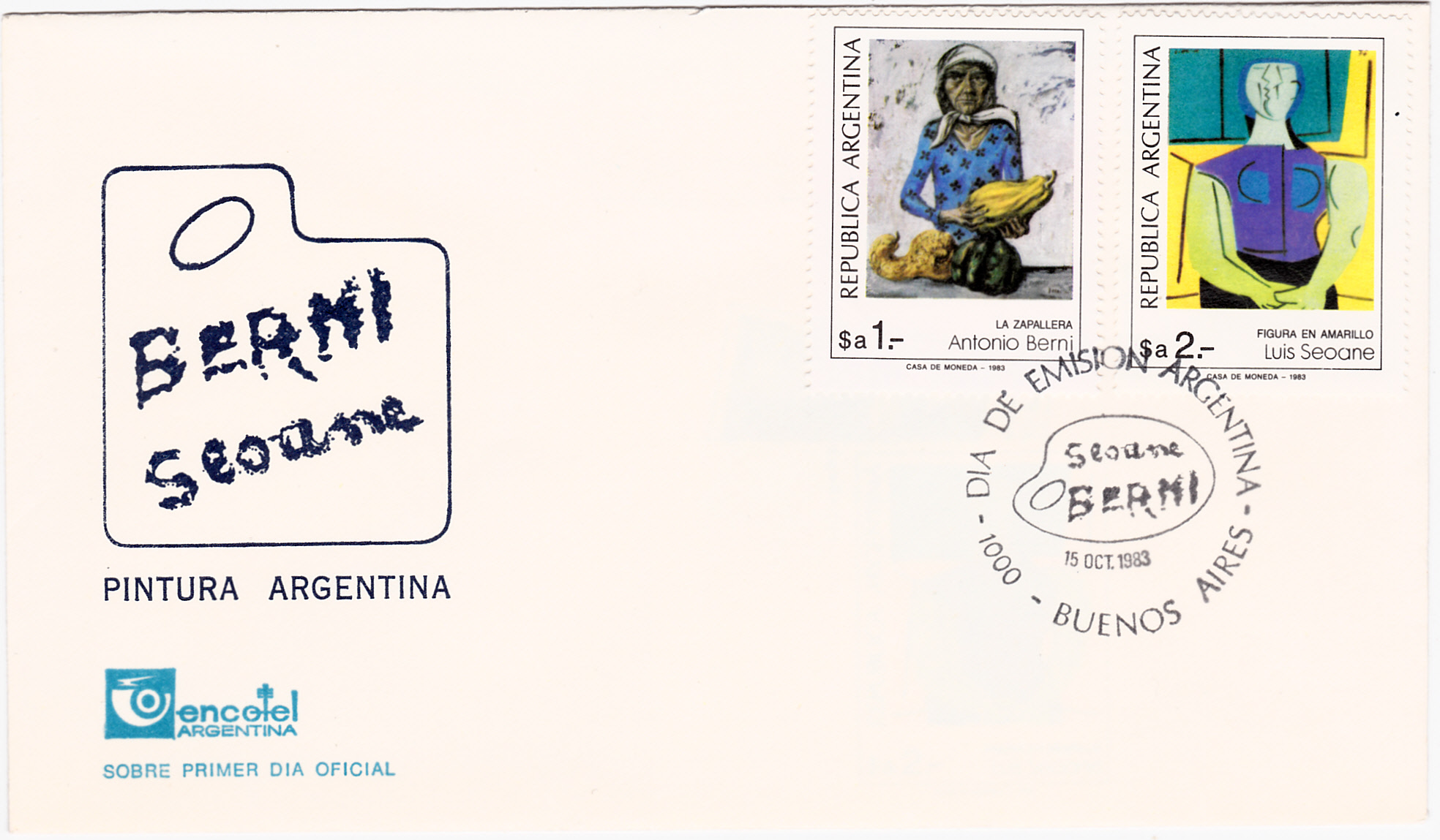 Auf diesem FDC der argentinischen Post wurde die Marke zusammen mit einer zweiten Marke der Ausgabe mit dem dazu passwe3nden Ersttagsonderstempel entwertet.
