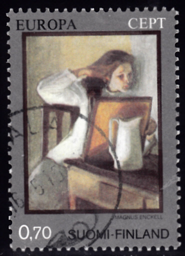 Auf einer Europamarke 1975 aus Finnland (MiNr 764) wird das Gemälde "Kämmendes Mädchen" von Magnus Enckell gezeigt.