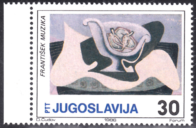 In einer Serie "Gemälde aus dem Kunstmuseum in Skopje" erschien in Jugoslawien diese Marke (MiNr 2201) mit einem Stilleben von František Muzika.