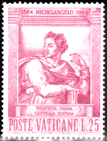 Auf dieser Marke aus dem Vatikan (MiNr 455) wird der "Prophet Jesaja", ein Detail aus einem Fresko von Michelangelo Buonarroti in der Sixtinischen Kapelle gezeigt.