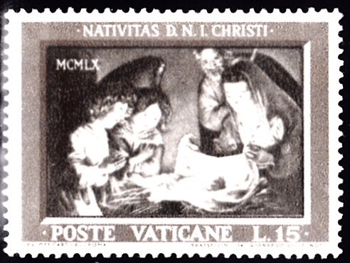 Im Vatikan sind 1960 drei bildgleiche Marke als Weihnachtsmarken erschienen. Sie zeigen "Die Heilige Familie mit zwei anbetenden Engeln" nach einem Gemälde von Gerrit van Honthorst.