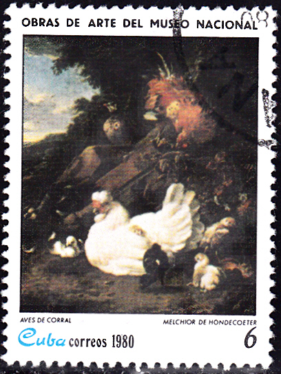 Diese Marke aus Kuba (MiNr 2465) zeigt sein Gemälde "Hausgeflügel".