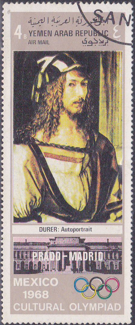 Aus dem Jemen-Nord (Arab. Republik) kommt diese Marke (MiNr 892) mit einem Porträt eines unbekannten Mannes von Albrecht Dürer.