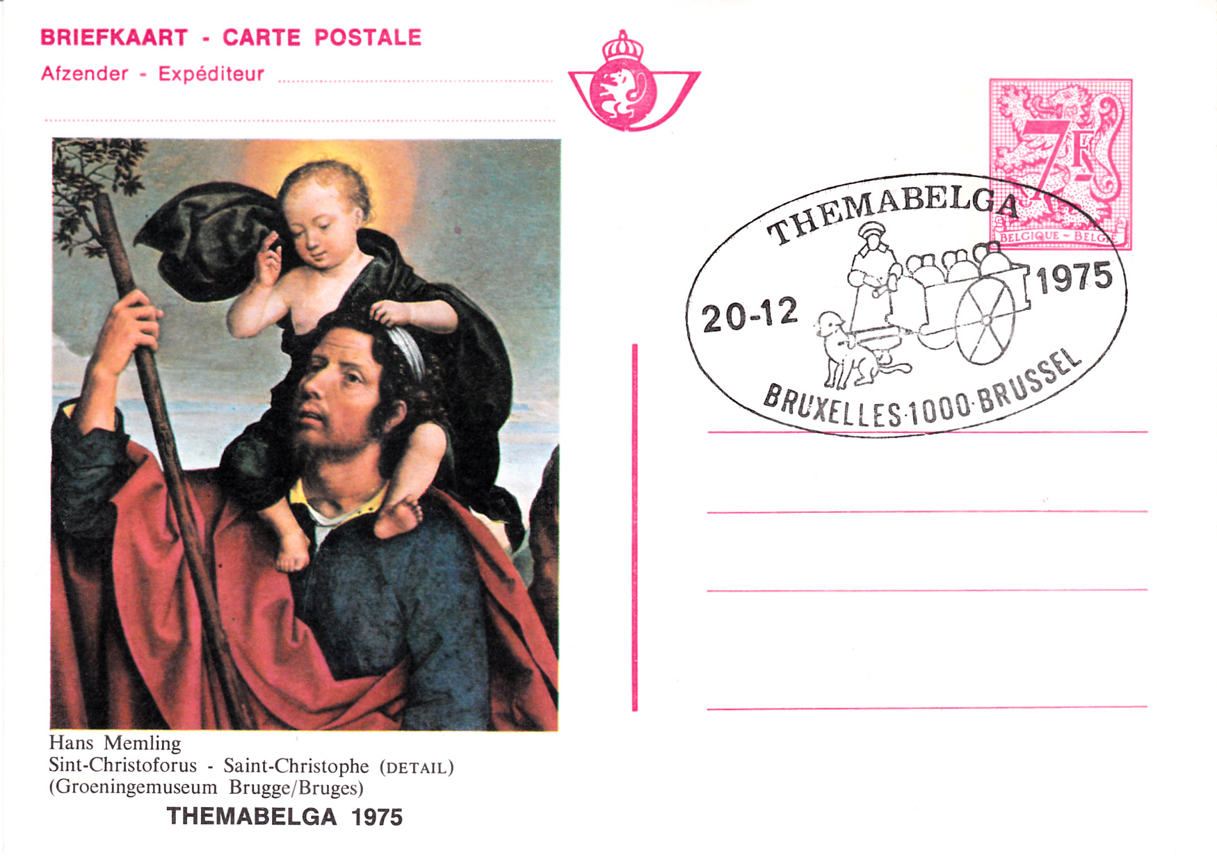 Auf der Weihnachtsmarke des Jahres 1966 aus den USA wird ein Detail aus dem Gemälde "Maria mit Kind und Engeln" von Hans Memling gezeigt.