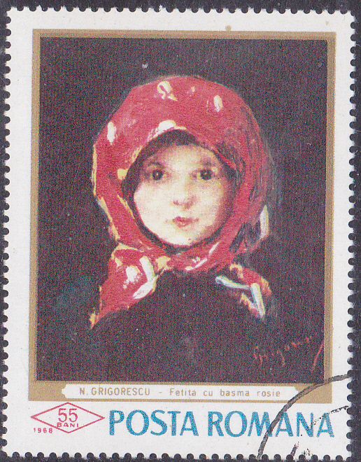In einer Serie Gemälde aus den Galerien in Bukarest und Hermannstadt (Sibiu) wurde in Rumänien diese Marke (MiNr 2667) diese Marke mit dem Gemälde "Mädchen mit rotem Kopftuch2 von Nicolae Grigorescu verausgabt.