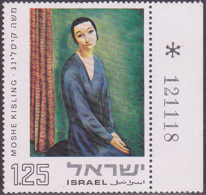Aus Israel kommt diese Marke (MiNr 609) mit dem Gemälde "Dame in Blau" von Moise Kisling.