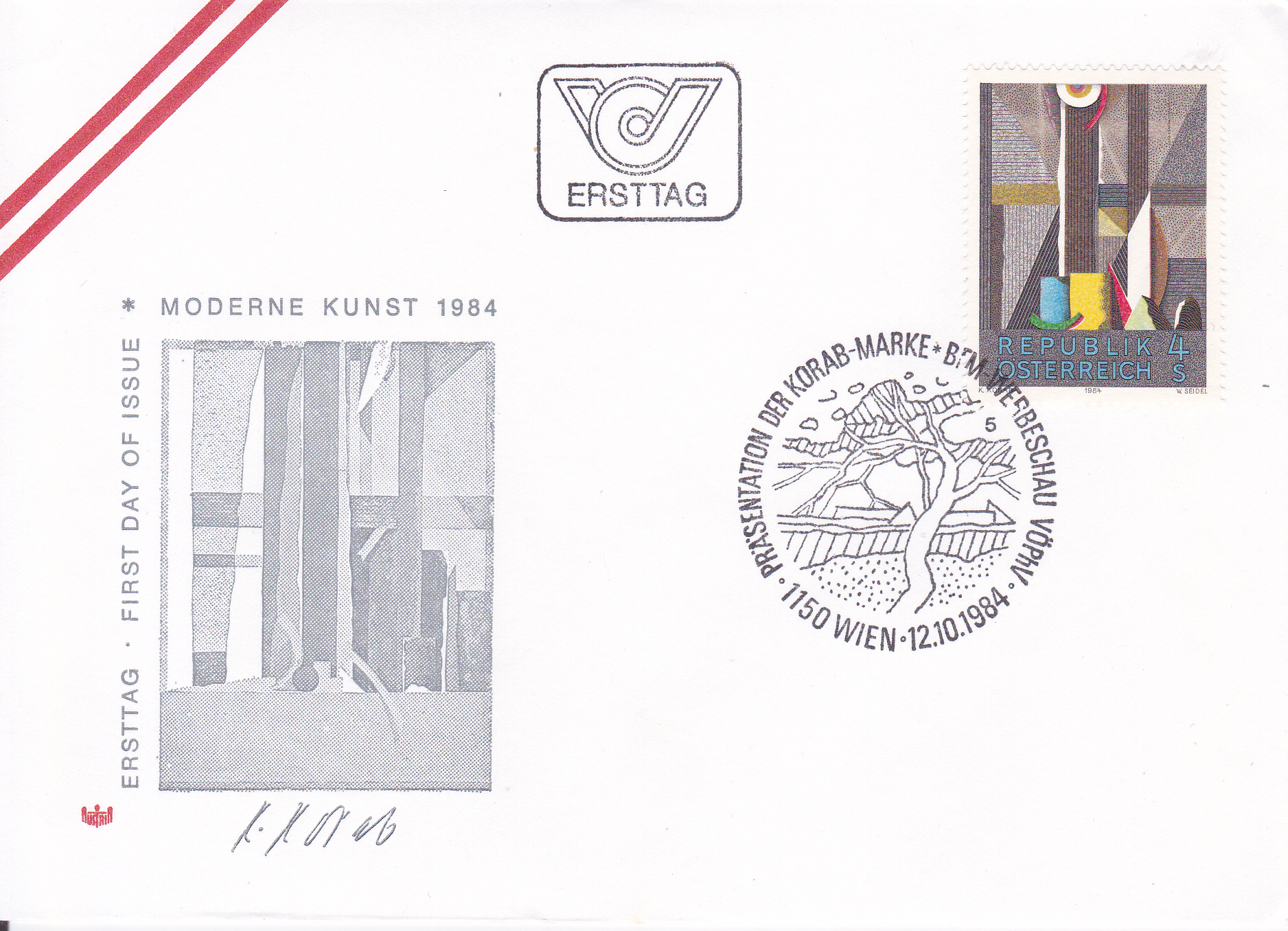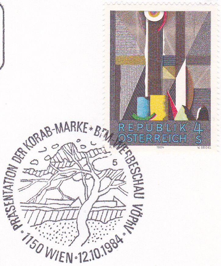 Auf einer Marke aus der Serie "Moderne Kunst in Österreich" ist in Österreich diese Marke (MiNr 1793) mit dem Gemälde "Fenster" von Karl Korab erschienen.