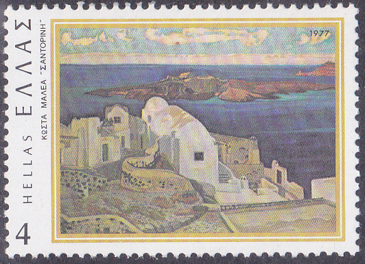 Aus Griechenland kommt diese Marke (MiNr 1293) mit dem Gemälde "Santorin" von Konstantin Maleas.