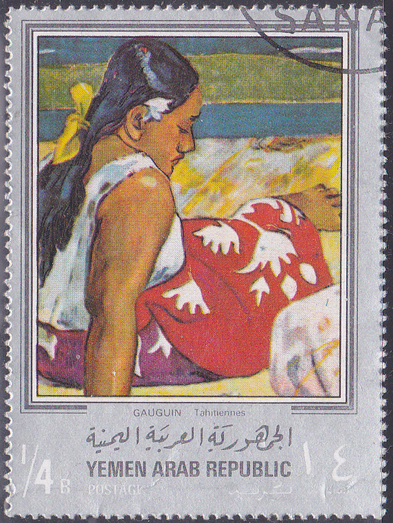Ergänzend zu den beiden bereits gezeigten Marken aus Jemen-Nord (Arab. Republik) kann ich heute weiter Marken dieser Serie zeigen. Hier kommt eine Marke (MiNr 630) mit einem Ausschnitt der rechten Seite des Gemälde "Frauen von Tahiti, auf dem Strand" von Gauguin.