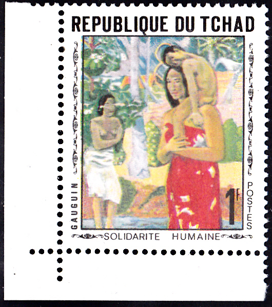 In einer Serie "Solidarität aller Menschen" ist im Tschad diese Marke (MiNr 266) mit dem Gemälde "La Orana Maria" von Gauguin erschienen.