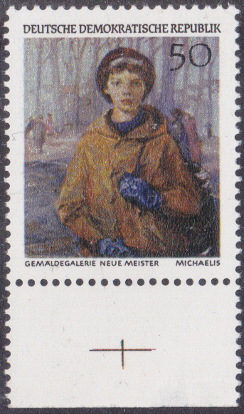 Aus der DDR kommt diese Marke (MiNr 1397) mit dem Gemälde "Oberschülerin Petra" von Paul Michaelis.