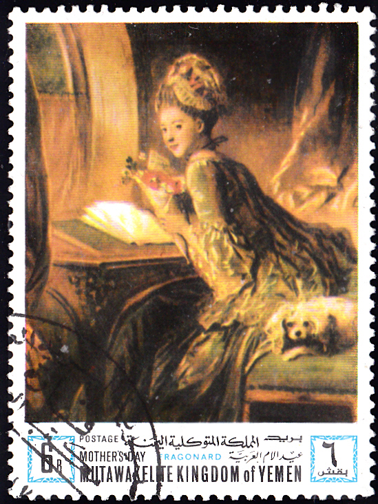 In einer Serie mit Frauengemälden zum "Muttertag" ist im Jemen-Nord (Königreich) eine Marke (MiNr 487 A) mit dem Gemälde "Der Liebesbrief" von Jean-Honoré Fragonard erschienen.