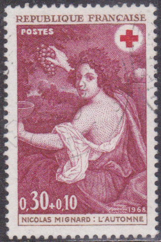 In der Ausgabe "Rotes Kreuz" 1968 erschien in Frankreich diese Marke (MiNr 1647) mit dem Werke " Le Printemps" (Der Frühling) von Nicolas Mignard.