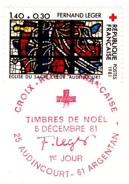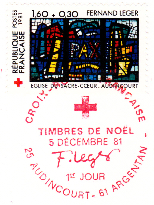 In diesem Ersttagssonderstempel zu den beiden im vorigen Beitrag gezeigten Marke aus Frankreich (MiNr 2295/96) sehen wir die Unterschrift von F.Léger.